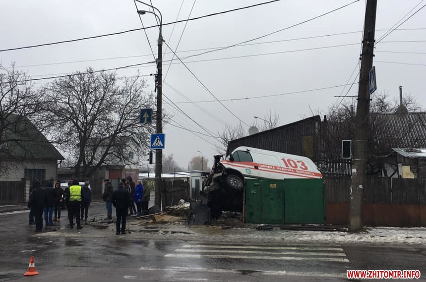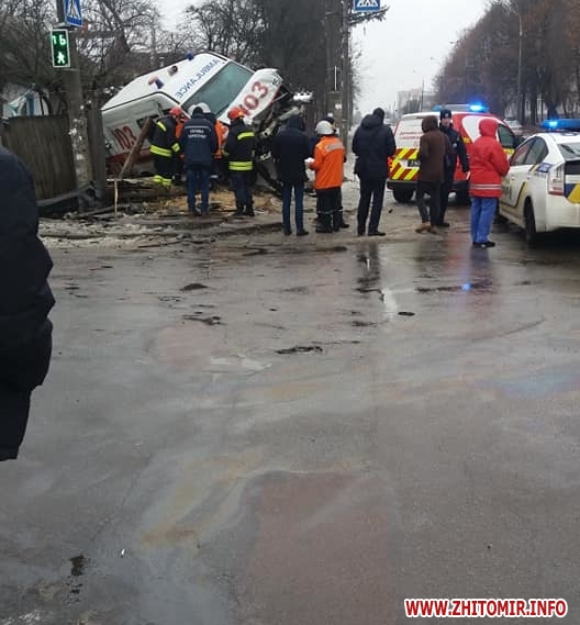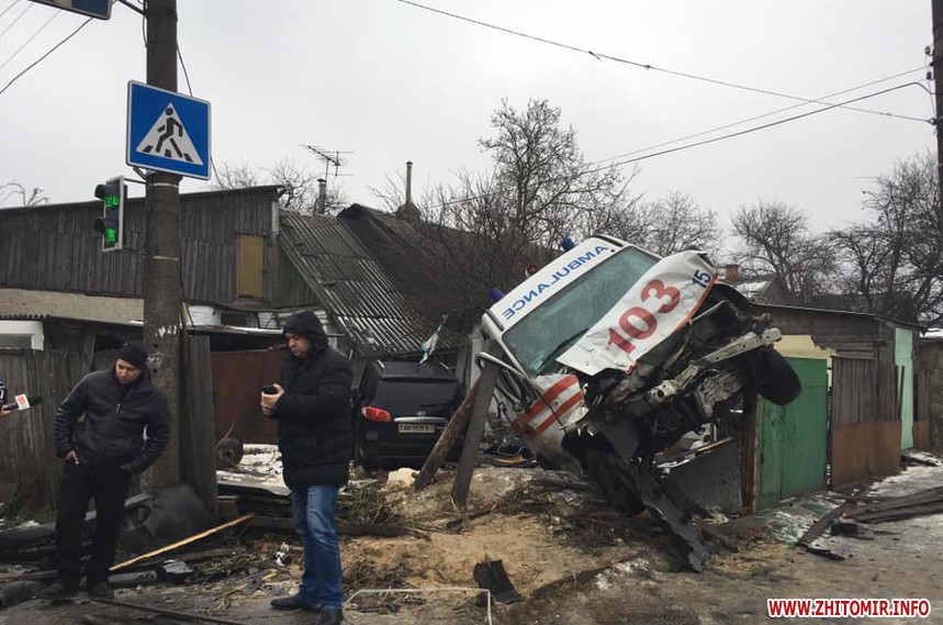 «Повідомлення про дорожньо-транспортну пригоду надійшло о 10.27 год. За попередньою інформацією, на перехресті вулиць Івана Мазепи та Домбровського автомобіль швидкої допомоги здійснив зіткнення з Hyundai Santa Fe, після чого обидва автомобілі в’їхали у будинок. Попередньо, внаслідок пригоди травми отримали шестеро осіб. Триває з’ясування всіх обставин», – поінформував речник патрульної поліції Житомирської області Ігор Іванюк.