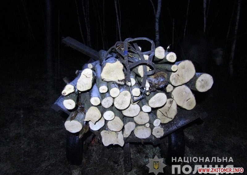 У Новоград-Волинському районі Житомирської області затримали чоловіка з бензопилою, який різав і складав на воза грабові колоди.