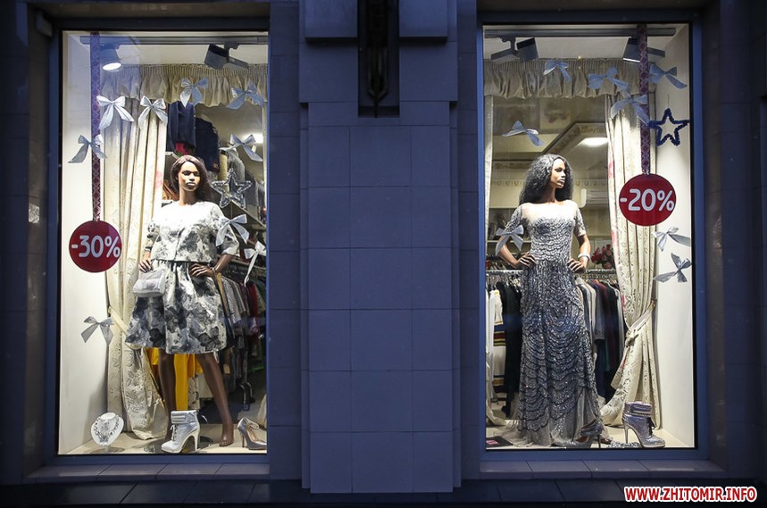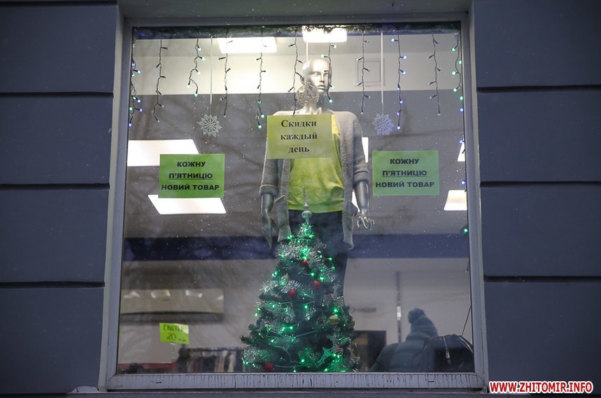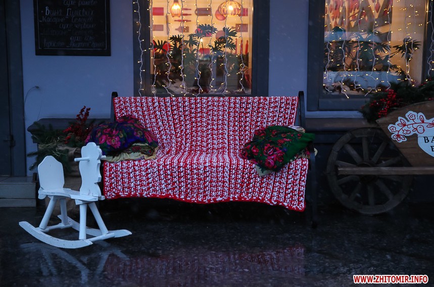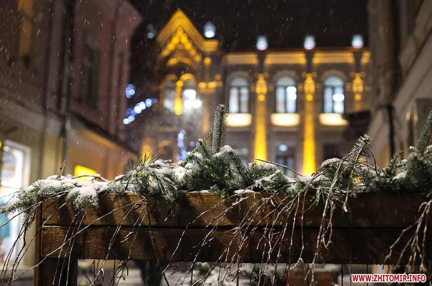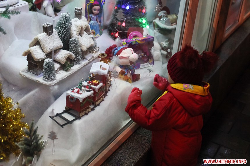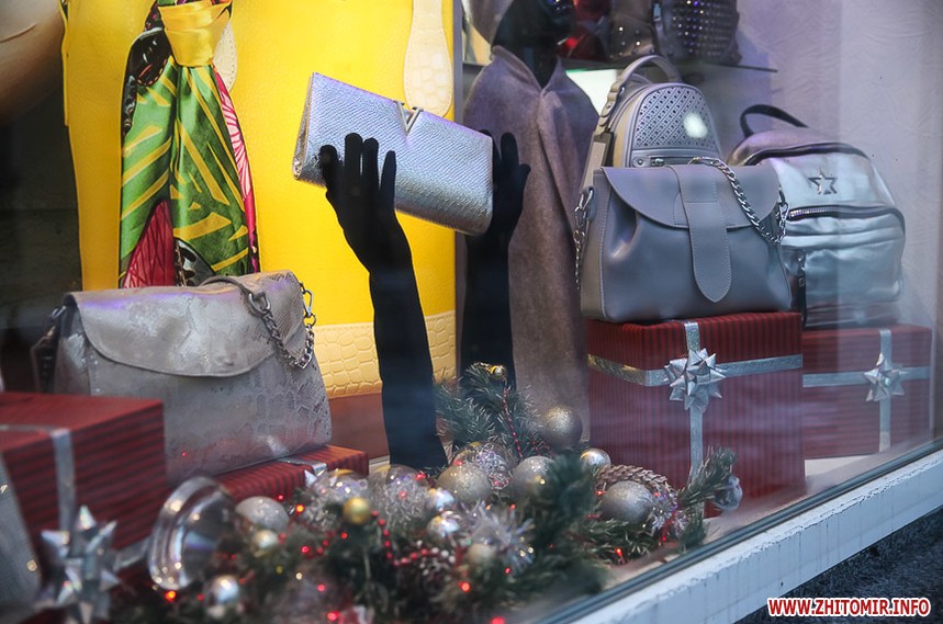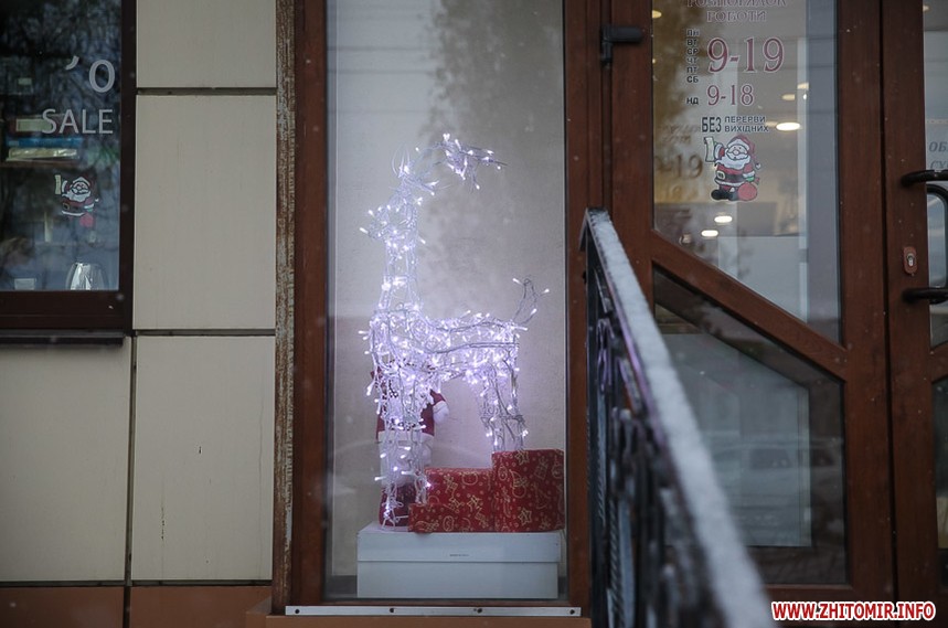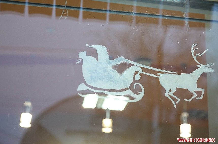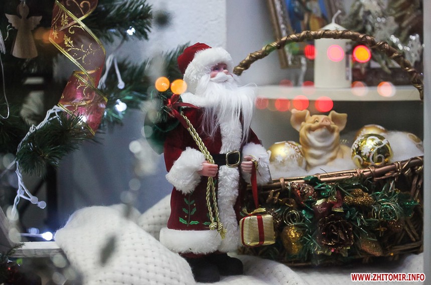 Та особливо святкового настрою житомирським вулицям додають яскраво прикрашені вітрини кафе та магазинів: мереживо білих сніжинок, різнобарвні вогники гирлянд, святково одягнені ялинки, казкові вітражі, сніговики, Діди Морози і Санта Клауси і, звичайно, головний символ прийдешнього року – милі, рожеві поросятка.