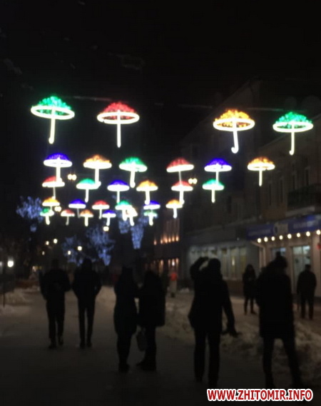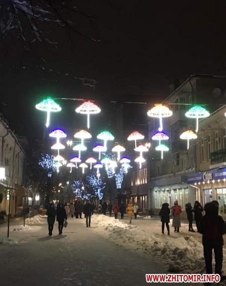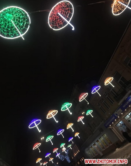 Увечері, 15 грудня, на вулиці Михайлівській у Житомирі увімкнули кольорові парасольки.