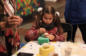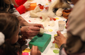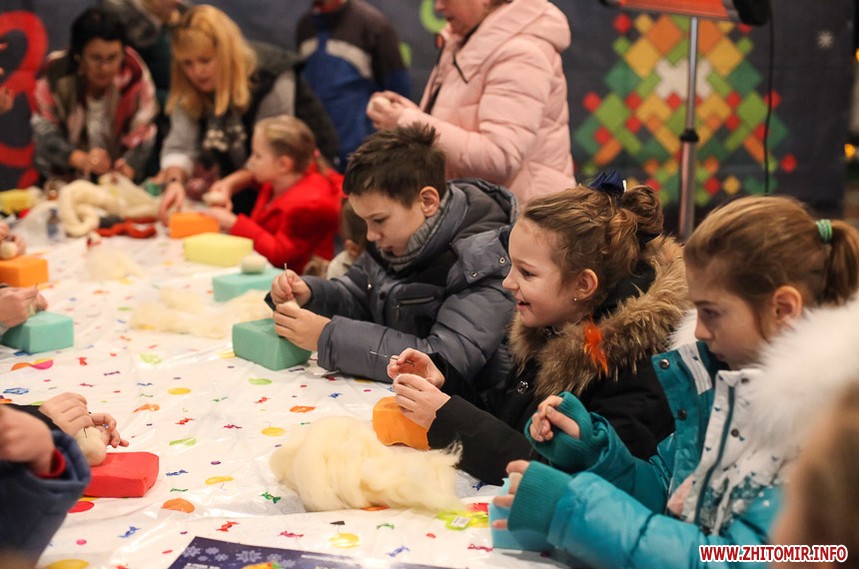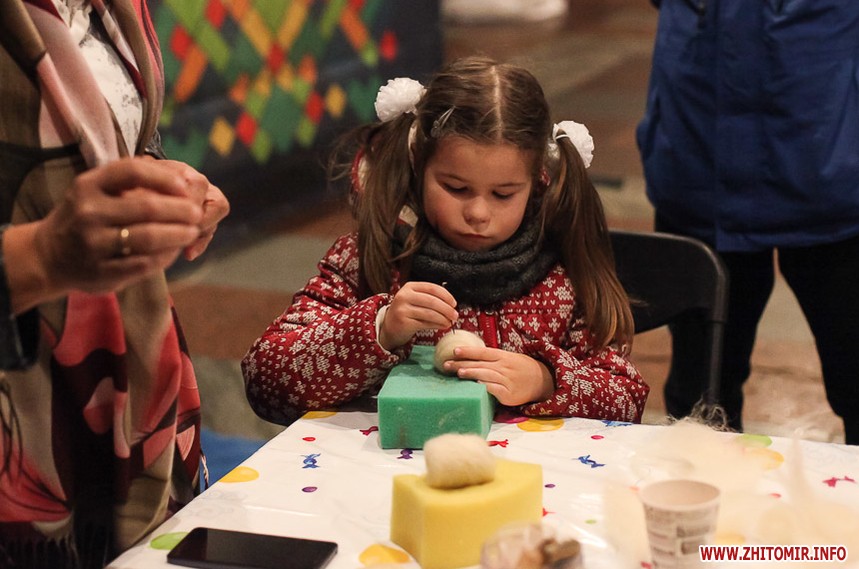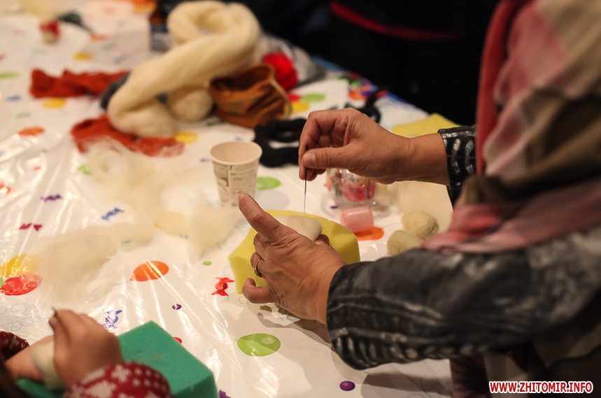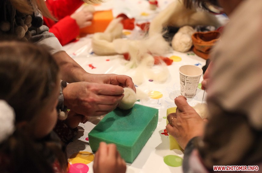 «Щодня діти власноруч створюватимуть новорічні та різдвяні подарунки для своєї родини та друзів: браслети, прикраси, малювання на тканині, валяння з вовни, іграшки на ялинку – янголи, ляльки, сніговички. Сьогодні вони виготовлятимуть тримачі для навушників – новорічні міньйони та іграшки - все, що можна подарувати рідним і близьким. На кожному занятті присутні 10-15 дітей», - розповіла Житомир.info організатор Дому української культури Надія Пасічник.