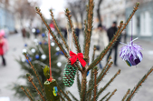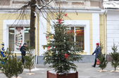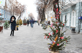 «Ми прикрасили 8 ялин, які стоять в горщиках – ті, що ми ставили на Михайлівській десь місяць тому. Прикраси обирали на власний смак: червоні банти, сніжинки, кулі», - розповідає працівниця КП «Зеленбуд» Олена.