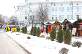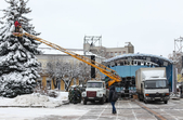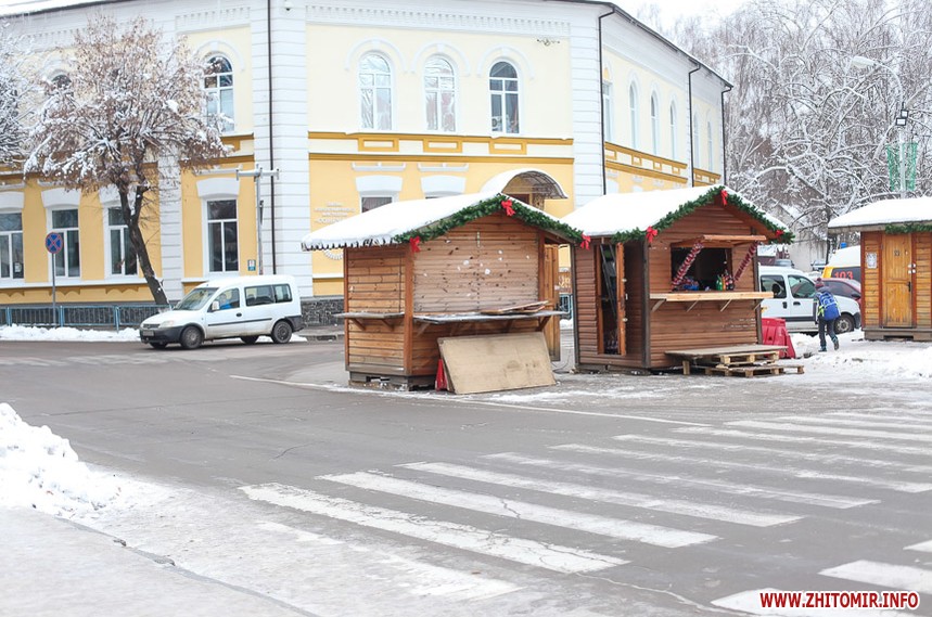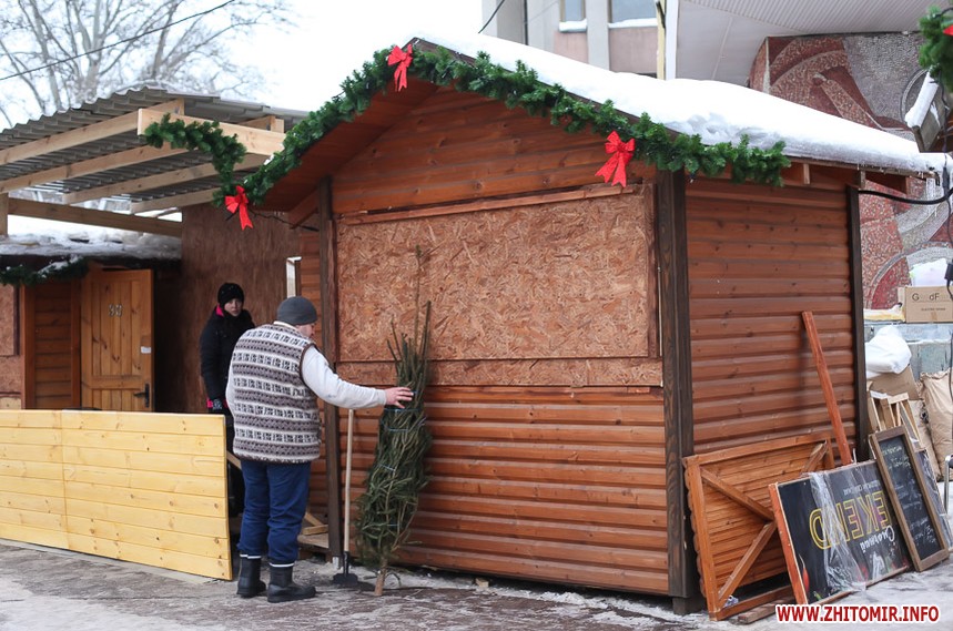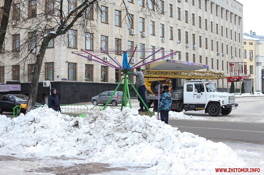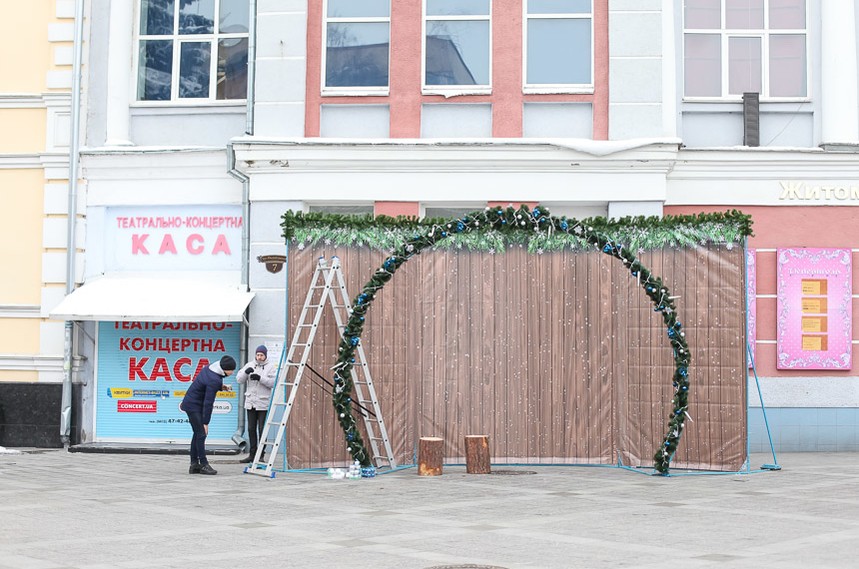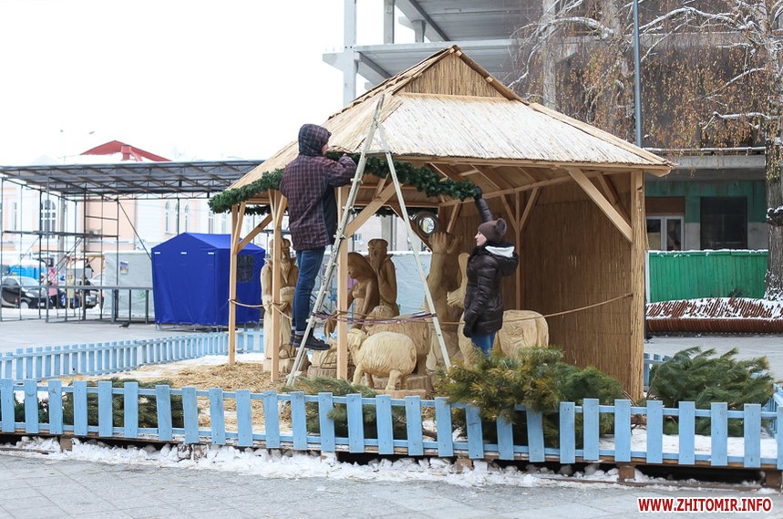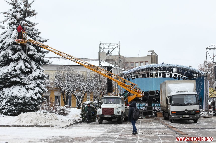 На майдані Корольова триває підготовка до відкриття Рідзвяного ярмарку та запалення головної ялинки міста, яке відбудеться увечері 19 грудня.