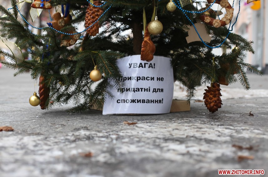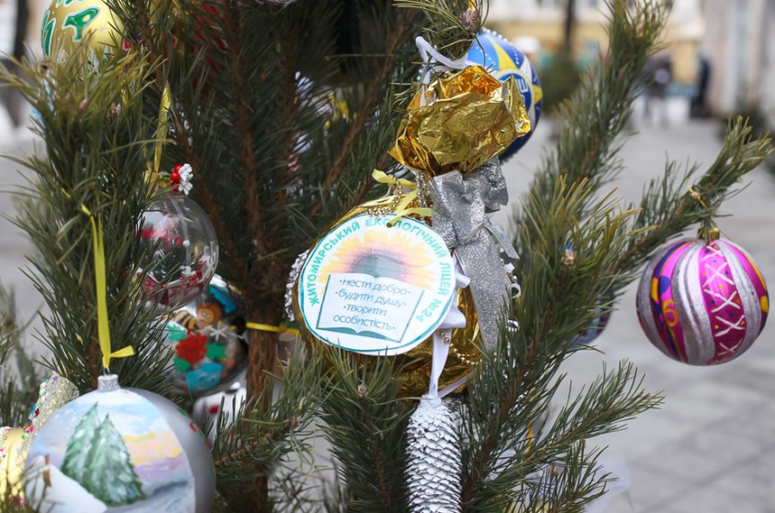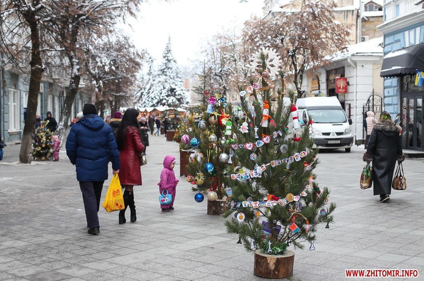 Ялинки прикрасили житомирські підприємці, комунальні підприємства міста, представники ОСББ, навчальні та лікувальні заклади, – інформує мерія. Лісові красуні прикрашені у різних стилях: цукерками, авторськими іграшками, бантами, ковбасою, м’якими іграшками, логотипами й випічкою, яку не можна їсти.