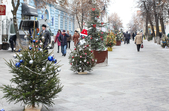 У День святого Миколая 19 грудня на вулиці Михайлівській у Житомирі встановили десятки живих новорічних дерев.
