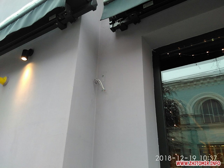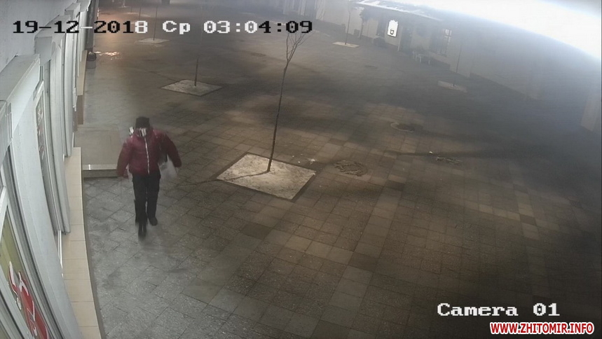19 грудня близько 3-ї години ночі невідомий чоловік пошкодив та забрав колонку і систему освітлення з фасадів двох закладів на вулиці Михайлівській у Житомирі.