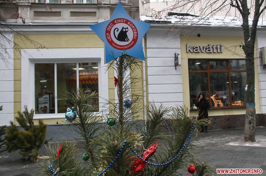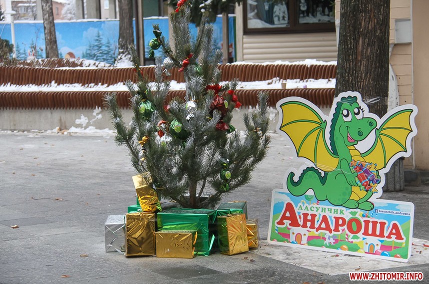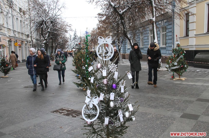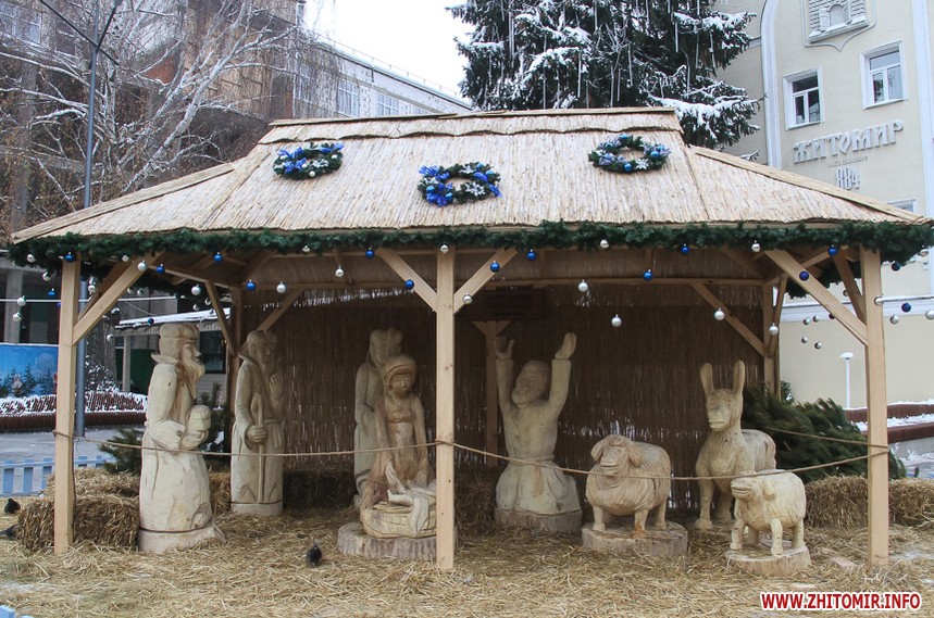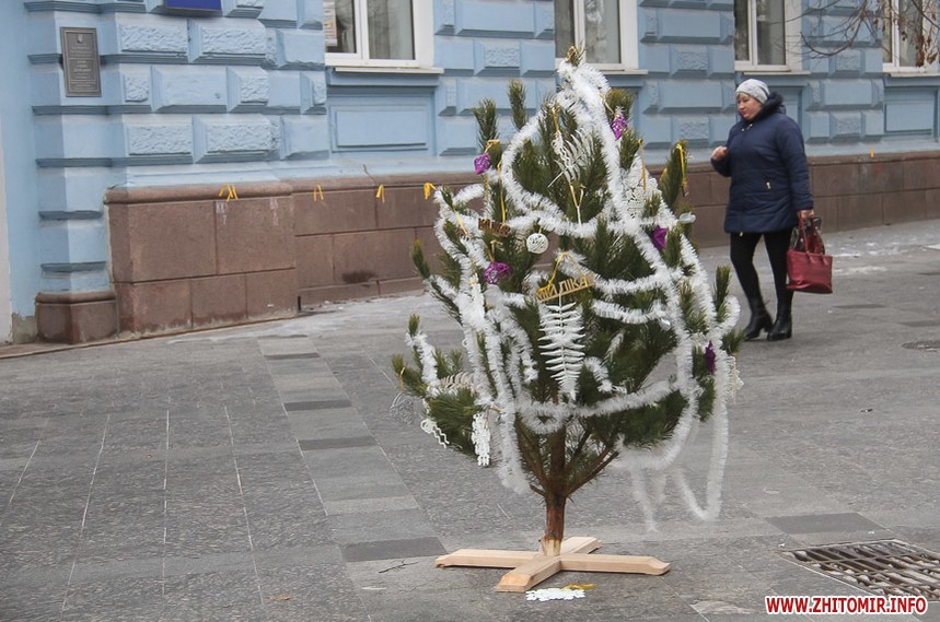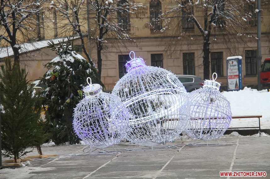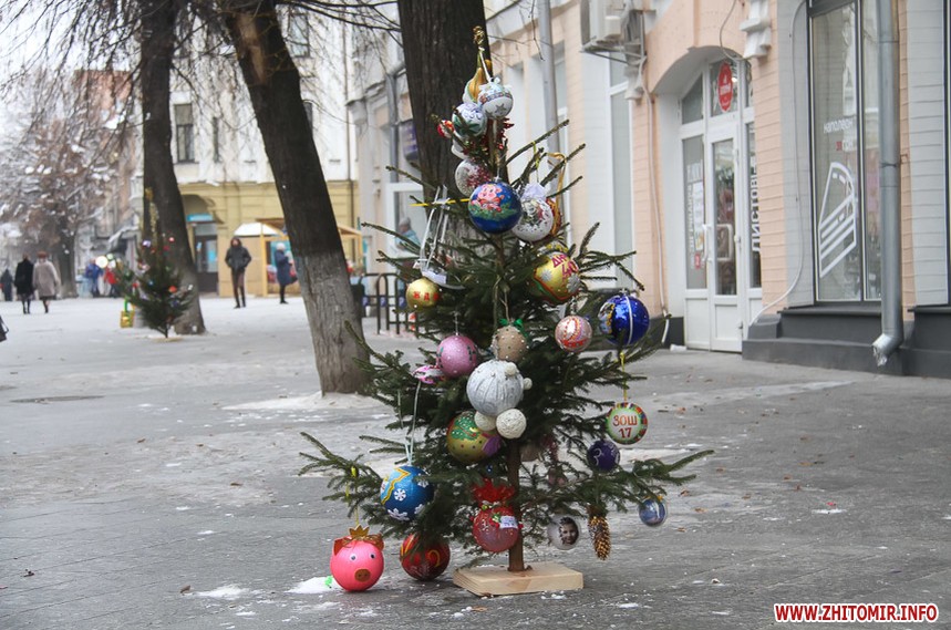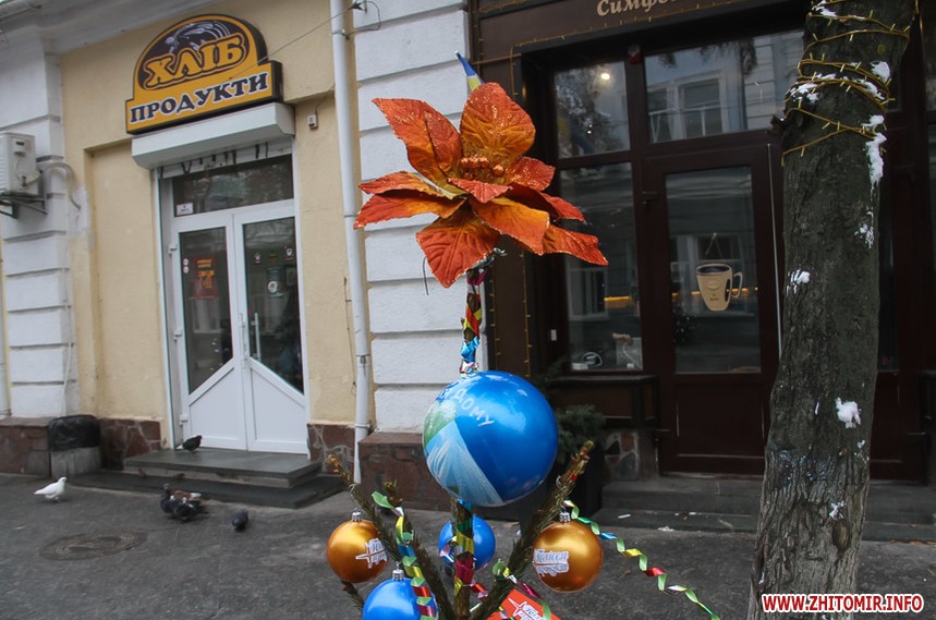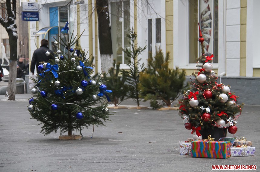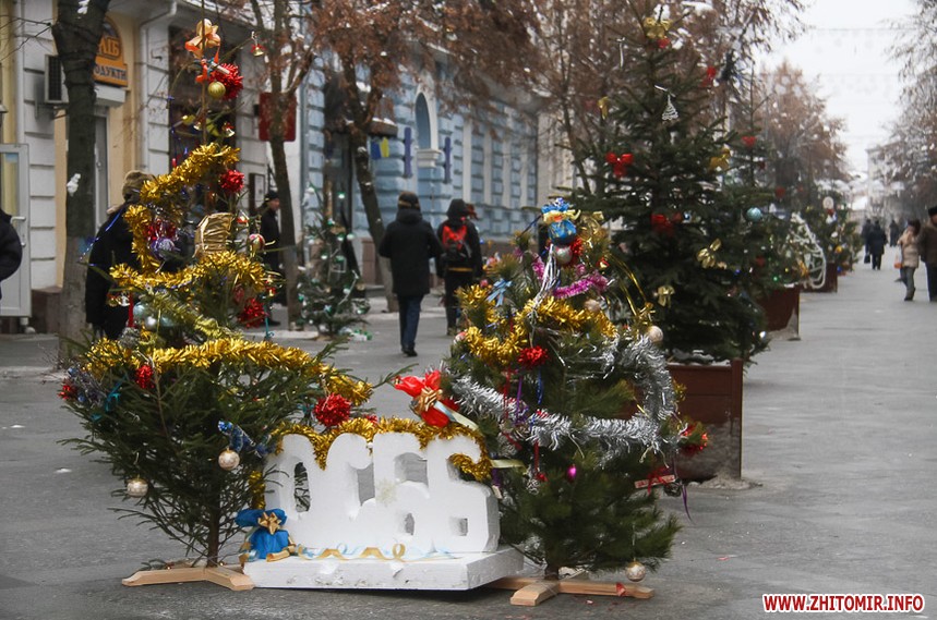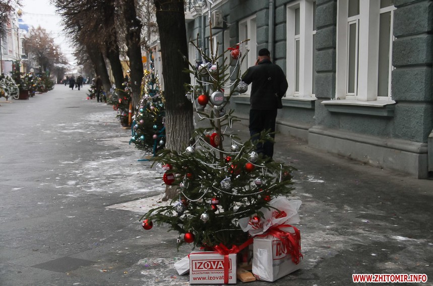 Житомир.info вирішив, наступного дня, після запалення головної ялинки міста, пройтися майданом Корольова та Михайлівською і подивитися, як «пережили» ніч новорічні дерева, вертеп та різдвяні панчохи на пішохідній вулиці.