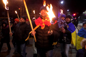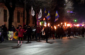 Кілька сотень житомирян долучились до смолоскипної ходи в 110-ї річницю з дня народження Степана Бандери. У супроводі кількох десятків поліцейських, вигукуючи націоналістичні гасла, колона пройшла центральними вулицями міста.