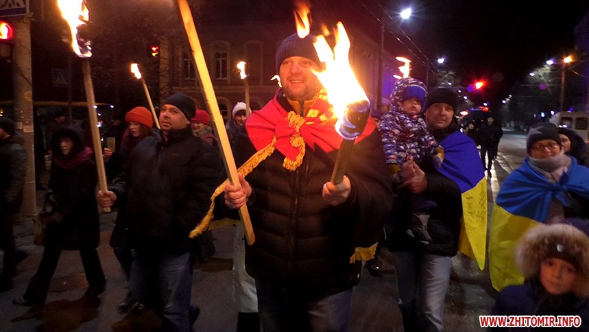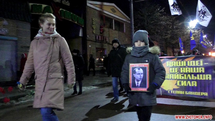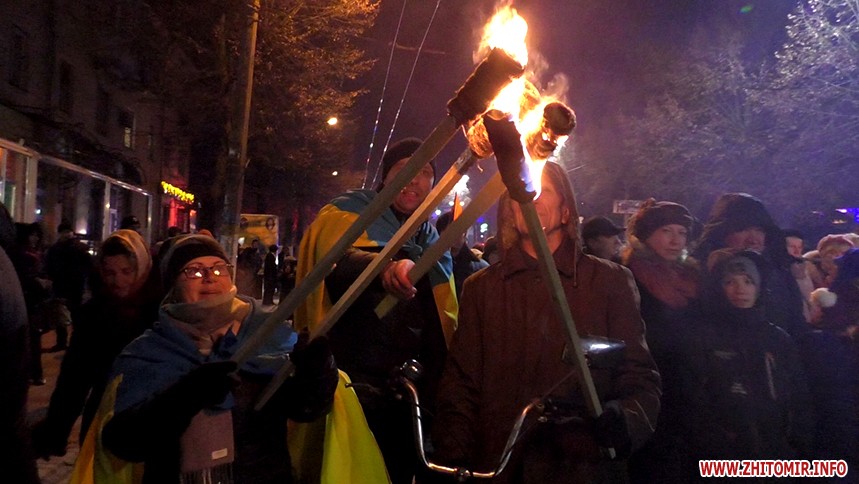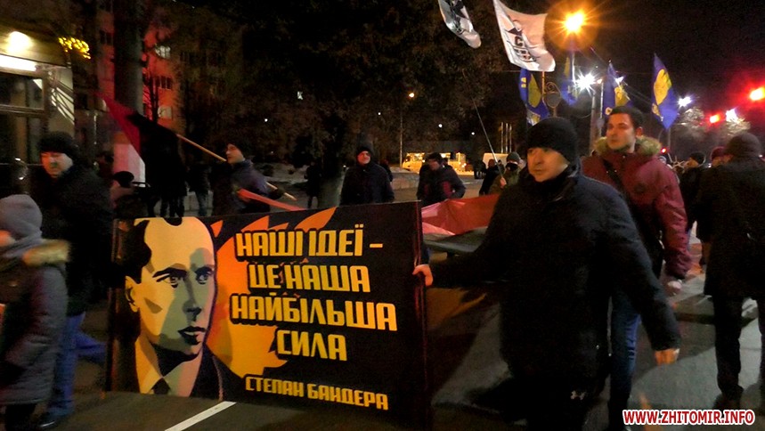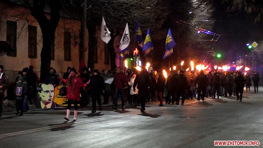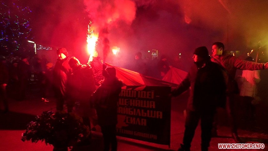 Як повідомляв Житомир.info, 1 січня 2018 року у Житомирі учасники смолоскипної ходи у супроводі кількох десятків поліцейських пройшли від пам’ятника Шевченку до вулиці Степана Бандери.