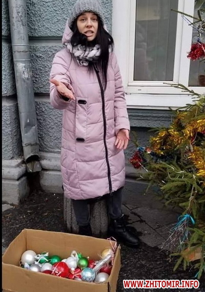 Інша житомирянка під ніком Galina Shevchuk розмістила у фейсбук знімки «голих» ялинок та відео, на якому дівчина біля коробки з іграшками відповідає, що виконує доручення свого керівництва, якого саме – не уточнює.