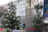 «Так буває у дівчаток. Перед святами фарбуються, бусиками обвішуються, брови, вії і все таке. А потім свято прийшло, вінішко знайшло і добре, хоч буси лишились. Не хочеться писати про фу і фе, тому... Вижила і слава Богу!)», - написала житомирянка і прикріпила фото ялинки «до» і «після».