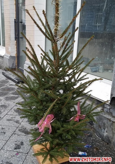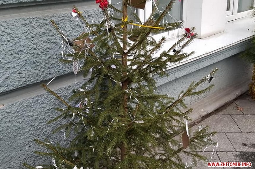 Про це в соцмережі написала житомирянка Альона Поліщук, яка разом з колегами брала участь у прикрашанні новорічного дерева від свого банку, а напередодні Нового року застала його без іграшок.