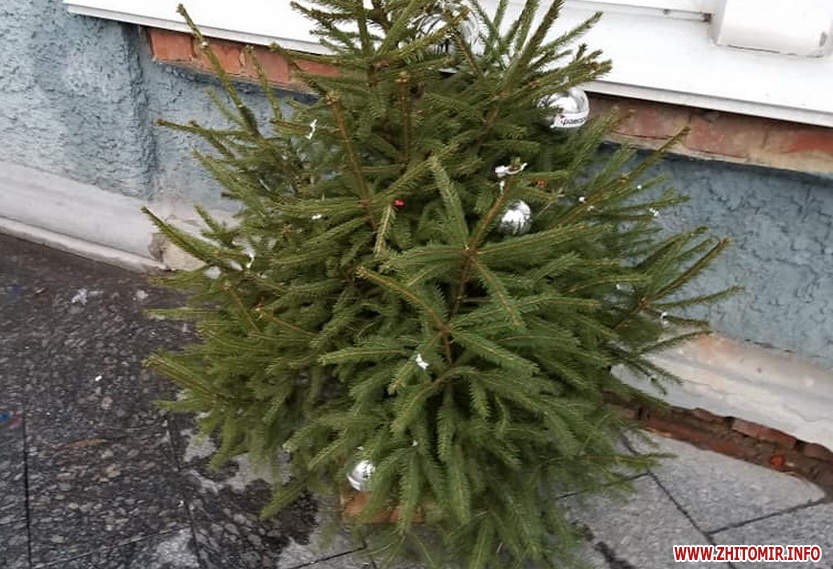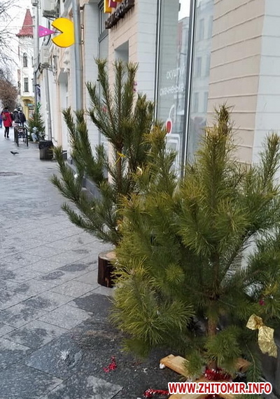 На пішохідній Михайлівській у Житомирі з прикрашених установами та ОСББ ялинок 30 грудня 2018 зняли прикраси.
