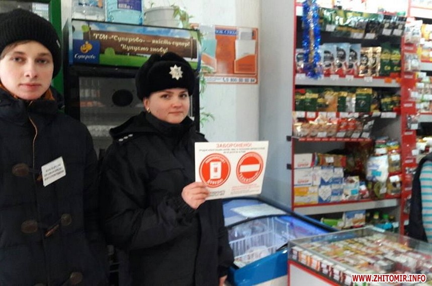 «Новорічні та Різдвяні свята продовжуються. В центрі міста - ярмарок, на якому, крім смаколиків, продають слабоалкогольні напої. А це все є спокусою для неповнолітніх. З метою недопущення продажу дітям алкогольних та слабоалкогольних напоїв інспектор ювенальної превенції Житомирського відділу поліції спільно з юним вартовим правопорядку Житомирщини Райковським Владом провели роз"яснювальну роботу з продавцями щодо недопущення продажу дітям слабоалкогольних напоїв та розповіли про відповідальності за таке правопорушення», - поінформувала «дитяча» поліція. Також інспектори відвідали кілька магазинів у центрі Житомира.