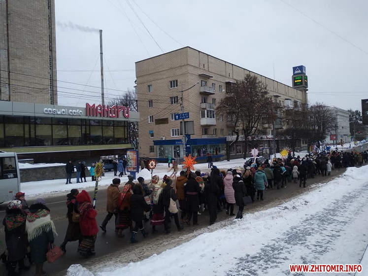 Представники Рада Християнських церков Житомирщини, мешканці та гості міста сформували колону та вирушили із вифлиємськими зірками центральними вулицями міста, вітаючи усіх перехожих із народженням Христа.