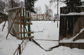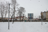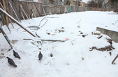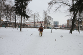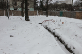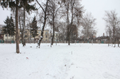14 січня на місці майбутнього скверу порожньо. Ділянка за парканом вкрита снігом. На ній - дерев'яна вбиральня, одинока велопарковка, розрита траншея, трубки з електрокабелем для підсвітки. Паркан несуцільний, тож у майбутньому сквері можна побачити рідких перехожих. І, що найприкріше, городяни вже почали зносити під паркан сміття: у кількох місцях лежать пакети з непотребом.