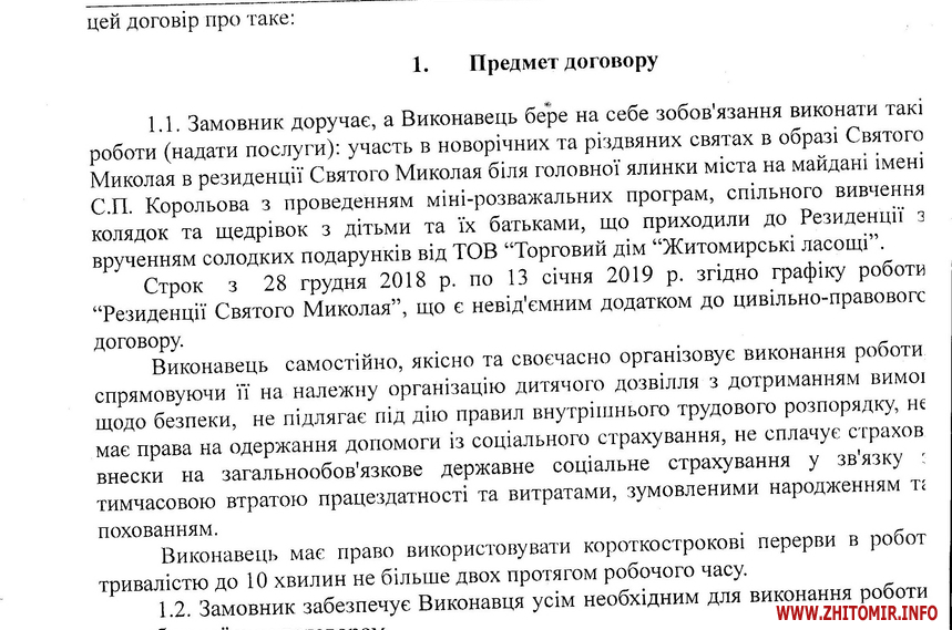 «Роботу аніматора в ролі Святого Миколая з організації розважально-інтелектуального простору відвідувачів майстер-класів у Резиденції Святого Миколая було запропоновано Морозу Руслану, який і в минулому році виконував вищезазначену роботу. Відносини між фізичною особою підприємцем Земнуховим О.О. та громадянином Морозом Р. В. оформлено цивільно-правовим договором згідно чинного законодавства. Для продовження роботи Резиденції комунальний заклад «Палац культури» Житомирської міської ради оформив цивільно-правовий договір на роль аніматора в образі Святого Миколая з громадянином Ліхотвориком В.О.», - йдеться у тексті відповіді, яку надали 15 січня.