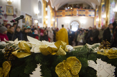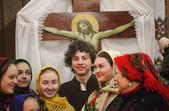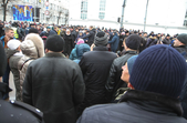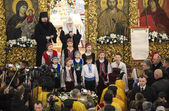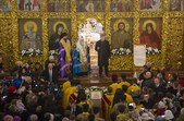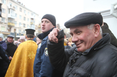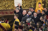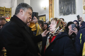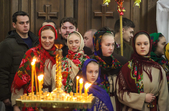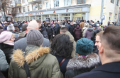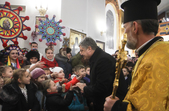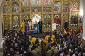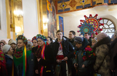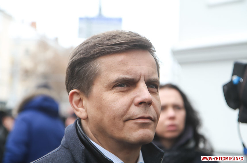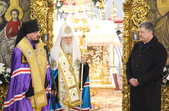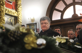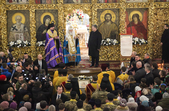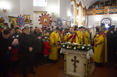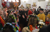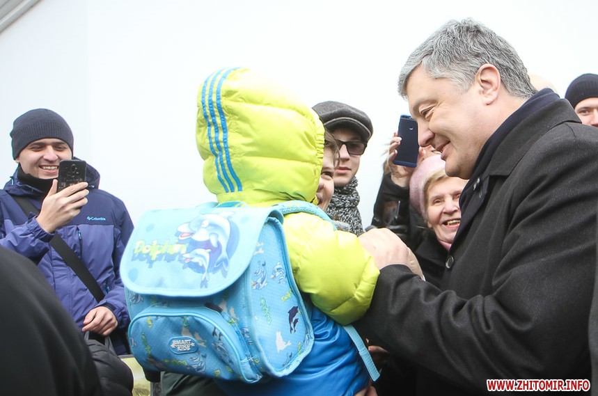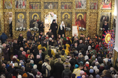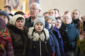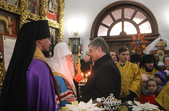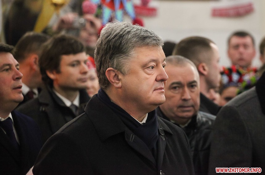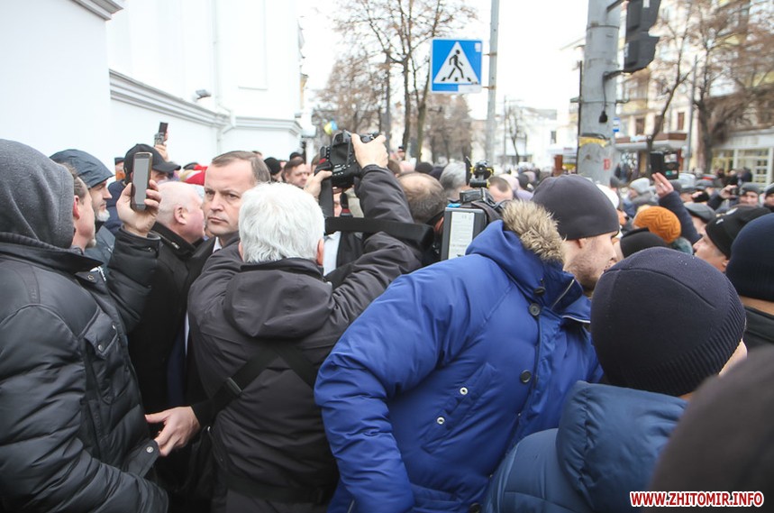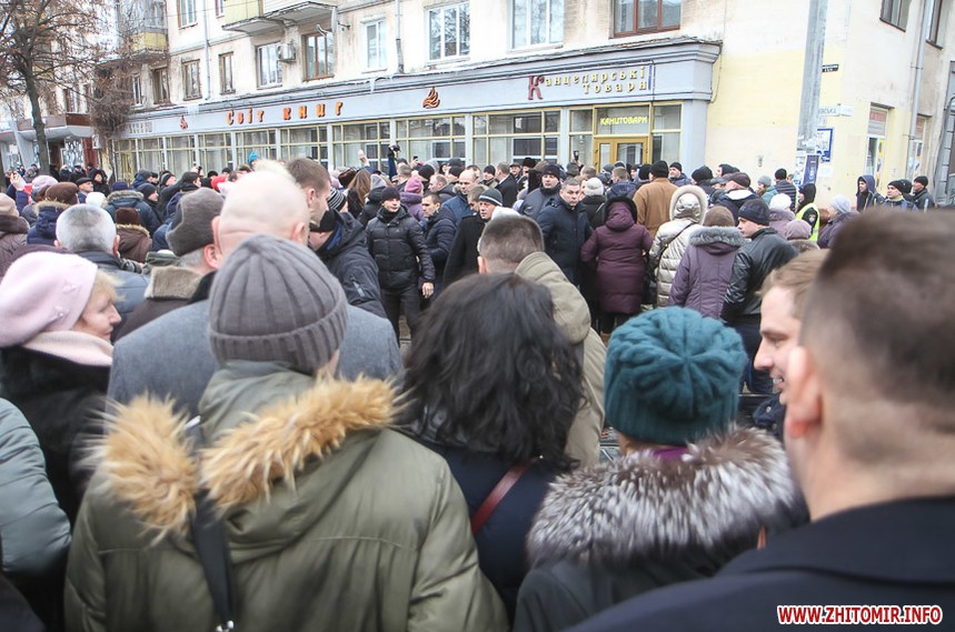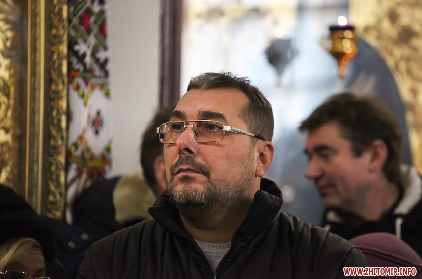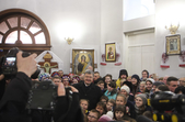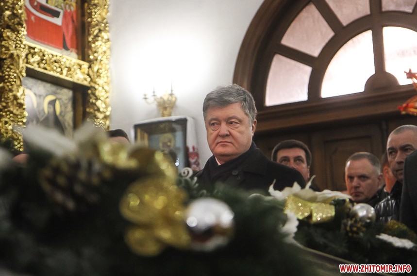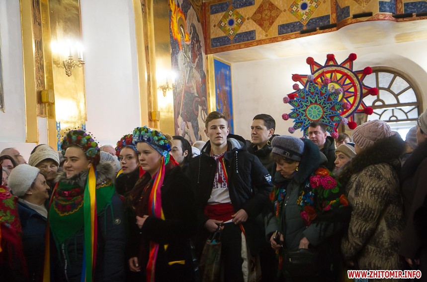 Натовп зібрався біля церкви, заполонивши частину вулиці Київської, де вона межує з Михайлівською. Люди фотографували президента Петра Порошенка, який прибув цього дня до Житомира.