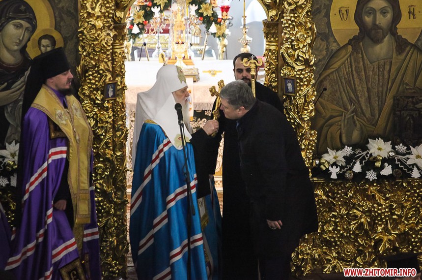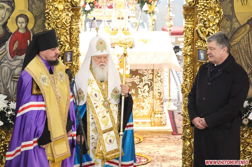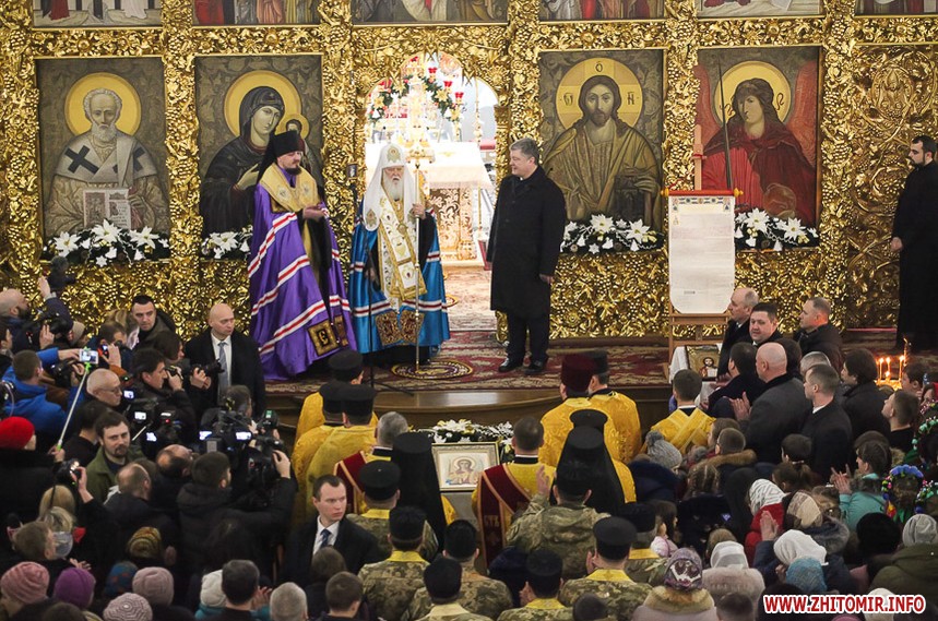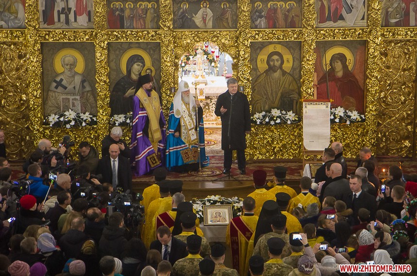 Як повідомляв Житомир.info, 17 січня 2019 року до Житомира приїздив патріарх Київський і всієї Руси-України Філарет, а також президент Петро Порошенко, який привіз Томос про автокефалію Православної церкви України до Свято-Михайлівського кафедрального собору. Житомир.info вів пряму трансляцію із храму. Після подячного молебню у соборі президент Петро Порошенко пообіцяв захищати парафії та священиків, які переходять до Православної церкви України, та подякував народним депутатам за законопроект щодо впорядкування механізму переходу. Після перебування у Свято-Михайлівському соборі президент поїхав на полігон біля Бердичева.