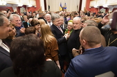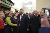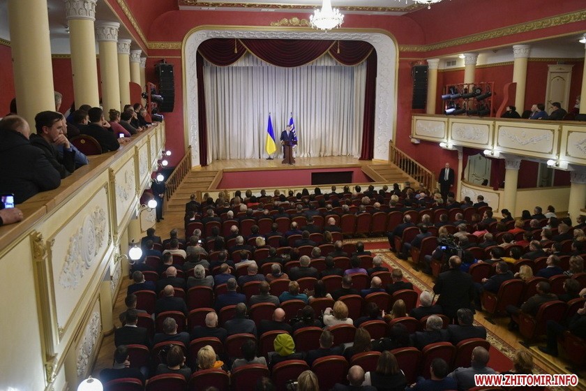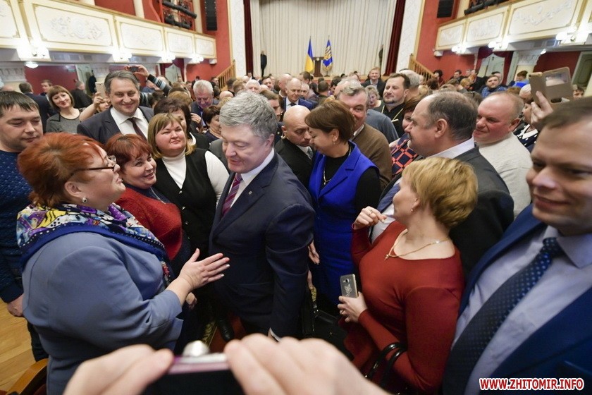 «Поки гарант був на полігоні, до Бердичівської міської ради почали звозити людей з області. Спостерігач ОПОРИ нарахував 13 мікроавтобусів, з яких люди йшли до муздрамтеатру на закриту зустріч. За словами спостерігача ОПОРИ, біля будівлі була охорона та поліція, всередину пускали лише по запрошеннях та паспортах. У прес-службі обласної організації партії «БПП «Солідарність» ОПОРІ заявили: «Абсолютно про це нічого не знаємо, збором людей не займалися і ніхто їх не звозив»... Як стало відомо спостерігачу ОПОРИ, до Бердичева на зустріч з Порошенком привезли людей з Олевська, Новограда-Волинського, Малина, Романова, Чуднова, Коростеня, Любара, Лугин, Овруча та Житомира», - йдеться у повідомленні.