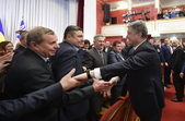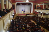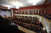 Спостерігачі ОПОРИ 17 січня зафіксували 13 автобусів біля будівлі міської ради в Бердичеві Житомирської області. Люди приїхали з різних районів, щоб зустрітися з президентом Петром Порошенком.