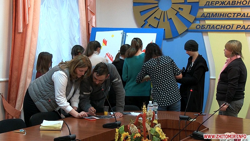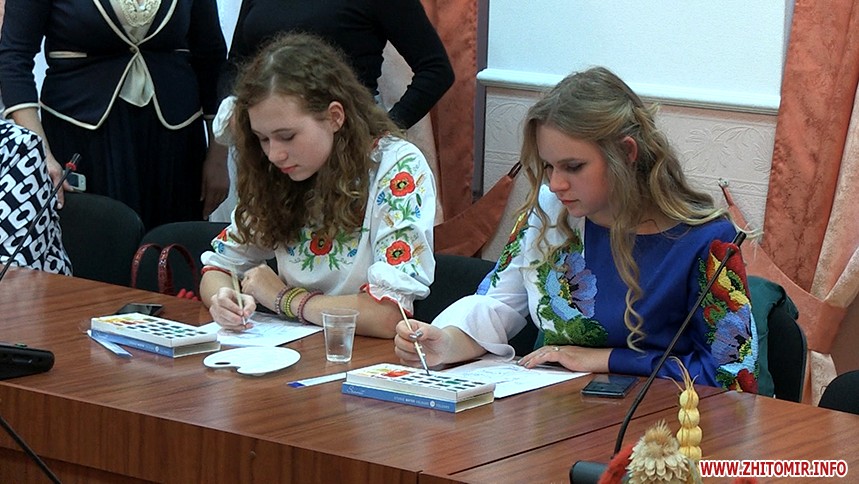 «Першого грудня в місті Фастів на Київщині стартувала загальноукраїнська акція, яка називається «Естафета єднання». Вона передбачає,що впродовж місяця книжка мандруватиме всією Україною, усіма містами. Кожну сторінку заповнюють талановиті діти того або іншого регіону, і вони малюють ті символи, які притаманні саме цій території, цьому регіону, але впізнавані у всій Україні. Сьогодні ця книжка у нас. Вона до нас приїхала з Рівненщини, і наступними будуть кримські татари, які вже заключну сторінку намалюють, і, відповідно, далі буде вже велика презентація загальноукраїнської Соборної України очима дітей», - розповідає начальник управління культури та туризму Житомирської ОДА Тетяна Парфентієва.