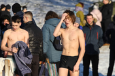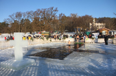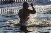 На свято Водохреща, 19 січня, у Житомирі – морозно та сонячно. Суботнього дня житомиряни з самого ранку поспішають до гідропарку, аби прийняти благодатну хрещенську купіль. Люди вірять: занурення в ополонку цього дня змиє гріхи, зміцнить душу та укріпить тіло. Перехрестившись і затамувавши подих, відчайдухи пірнають у крижані води Тетерева, отримуючи незвичайний заряд емоцій.