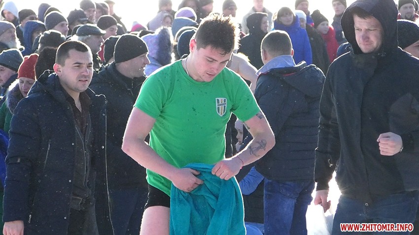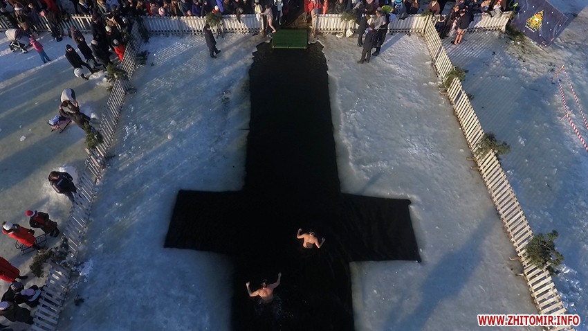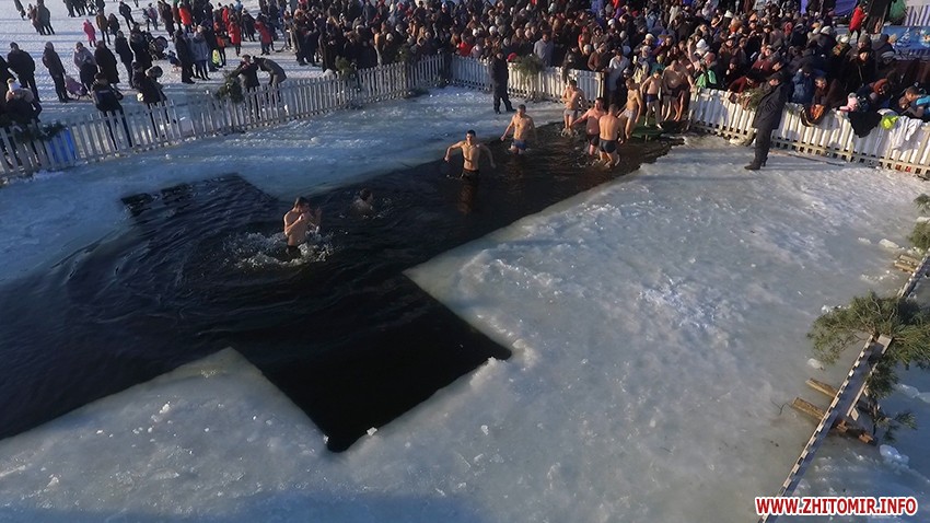 Рівно о 14 священики освятили воду Тетерева, і люди розпочали купання в ополонці. Для зручності містян на набережній було обладнано два намети до чоловіків та жінок, де можна було переодягнутися. ДСНС також обладнала пересуваний пункт обігріву.