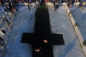 Поблизу місця для купання розташувався фудкорт, де можна було придбати різноманітні смаколики та глінтвейн.
