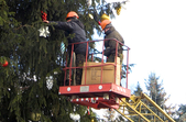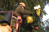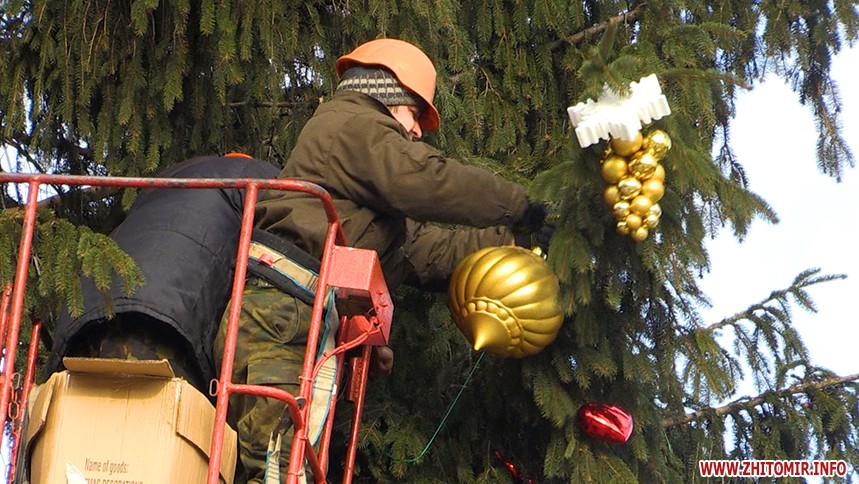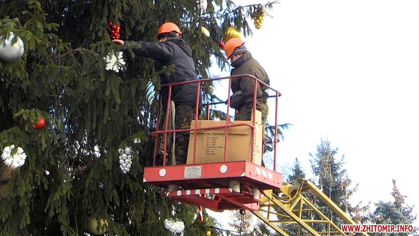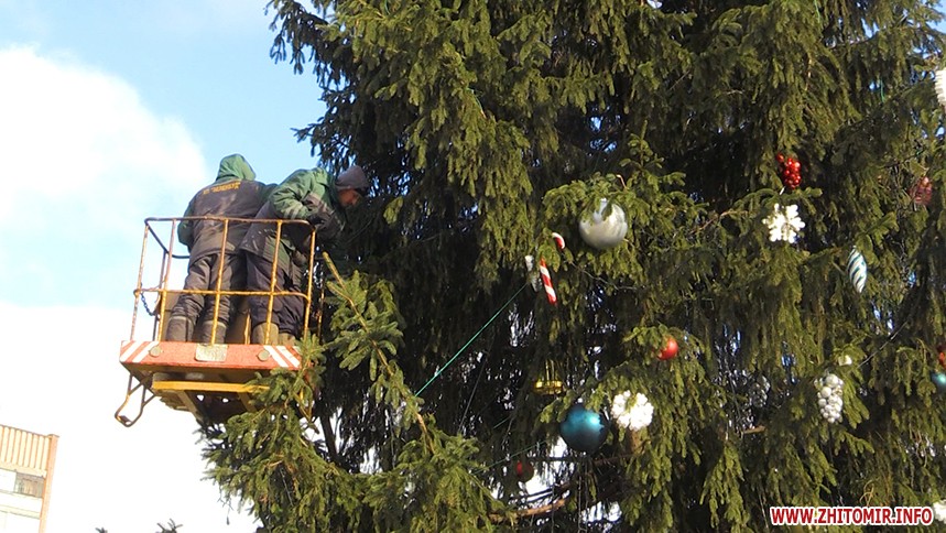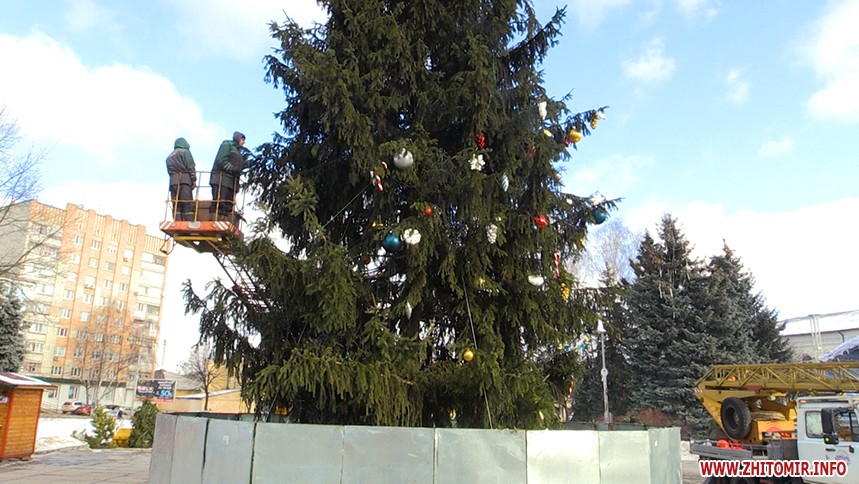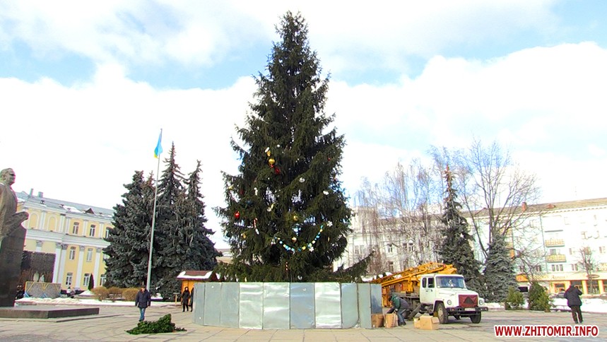 21 січня співробітники КП «Міськсвітло» та КП «Зеленбуд» почали прибирати із ялинки на майдані Корольова прикраси. Із самої ялинки збираються зробити лавочки для скверів.