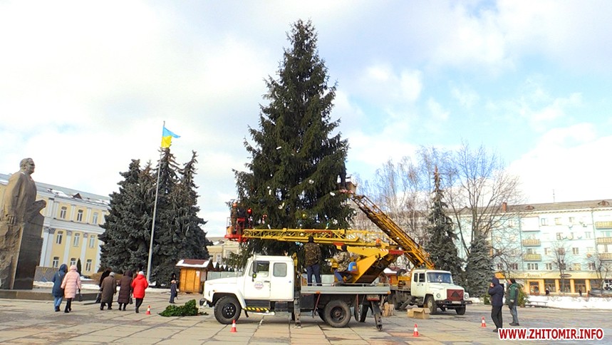 Як повідомляв Житомир.info, цьогоріч, вперше за останні 11 років, на майдані Корольова у Житомирі встановили живу новорічну ялинку. Раніше 15-метрове дерево росло на території дитячого садочка № 37 «Ластівка».