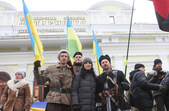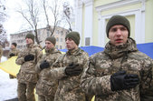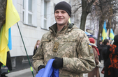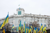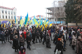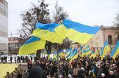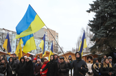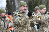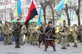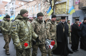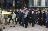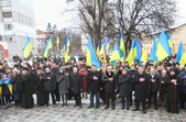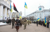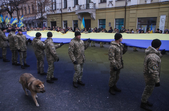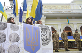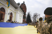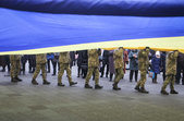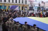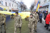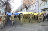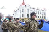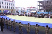Символічно, що ті, у чиїх руках спокій країни, – військовослужбовці – пронесли вулицями міста величезне синьо-жовте знамено.