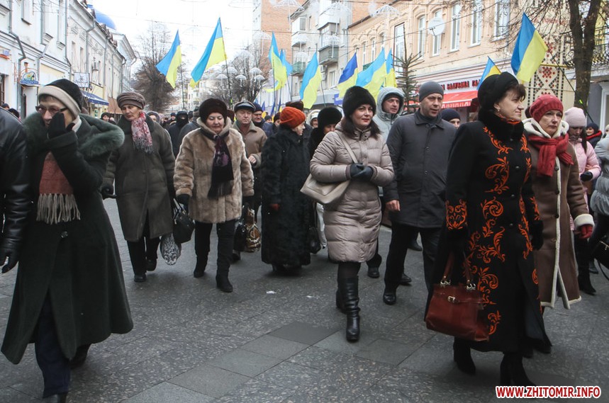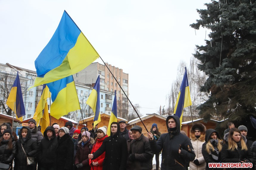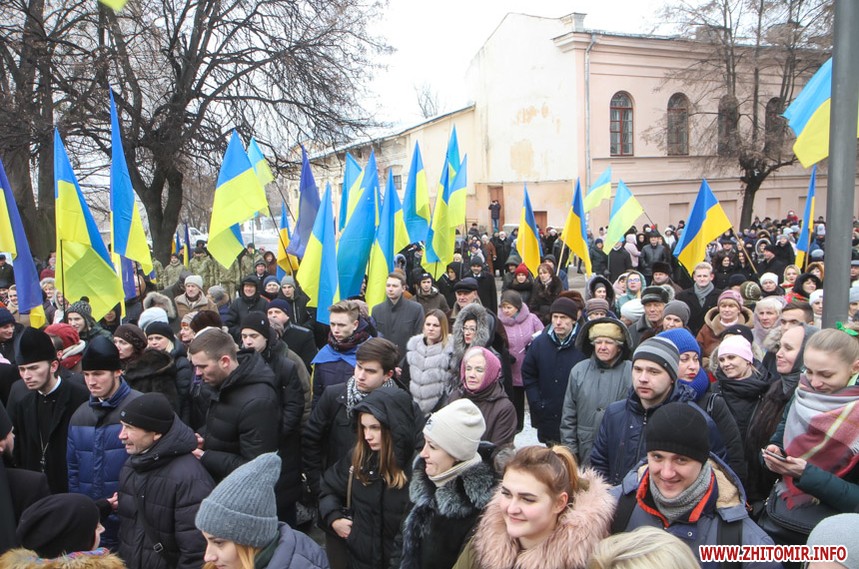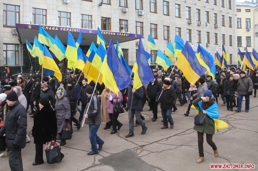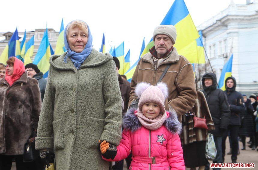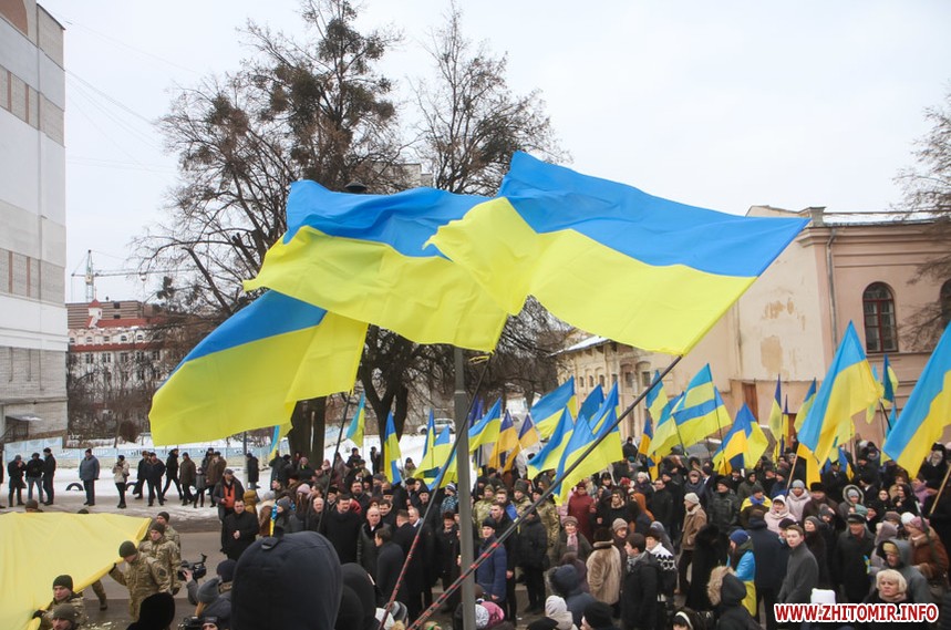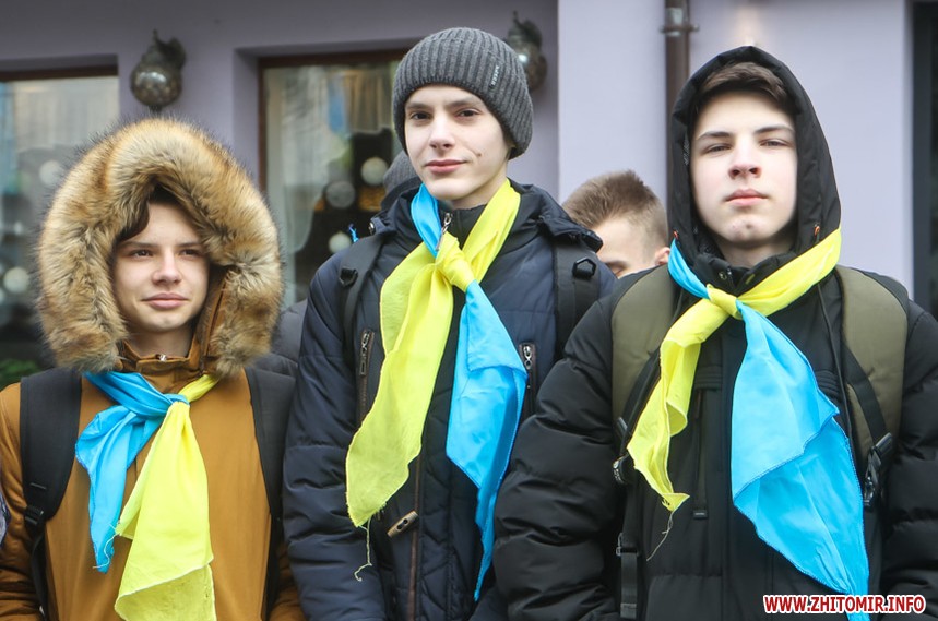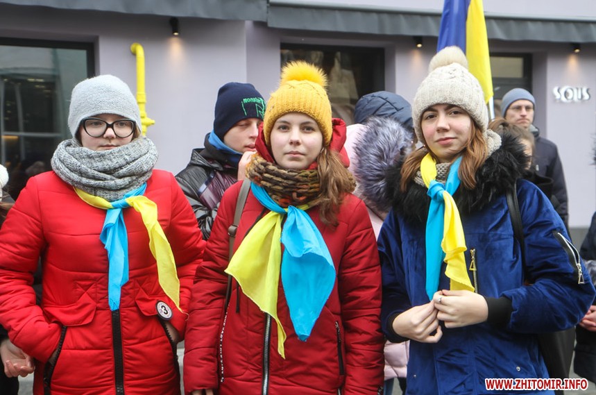 З хустинками-прапорами, зав’язаними на шиї, з національними стягами у руках, з усмішками на обличчях та в піднесеному настрої житомиряни відзначили День Соборності України і 100-річчя проголошення Акта Злуки.
