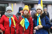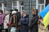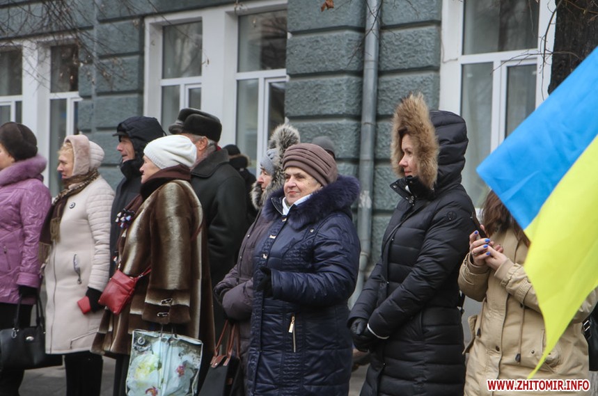 Взявшись за руки, люди утворили «ланцюг єдності» – від Свято-Михайлівського кафедрального собору до Житомирської обласної філармонії ім. С. Ріхтера.