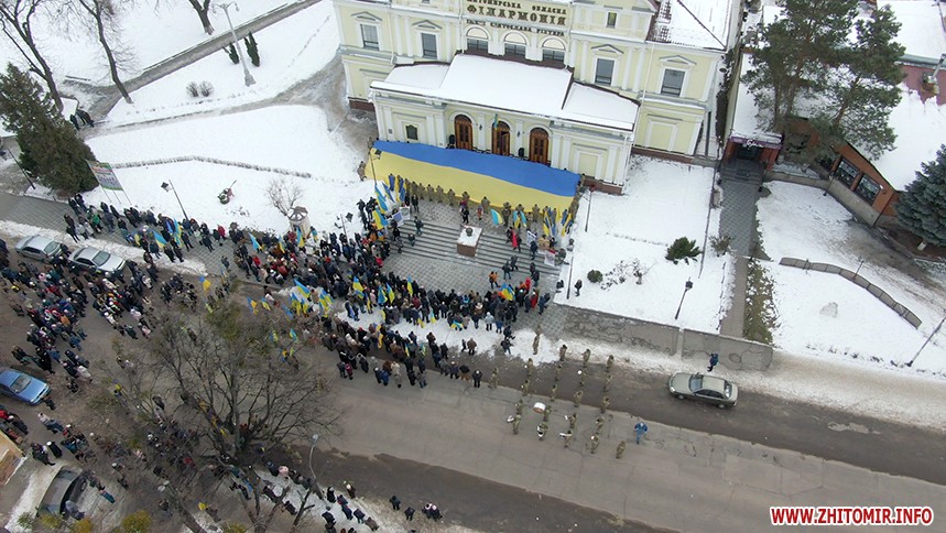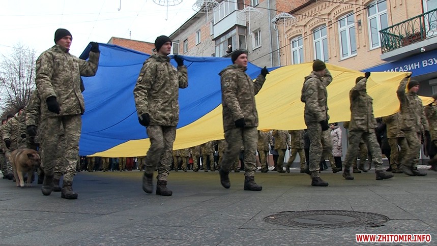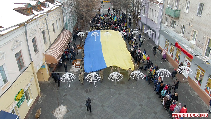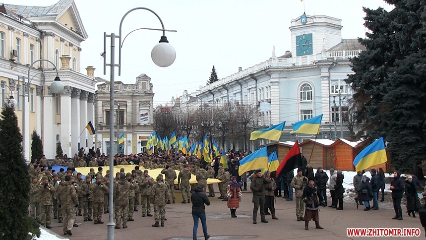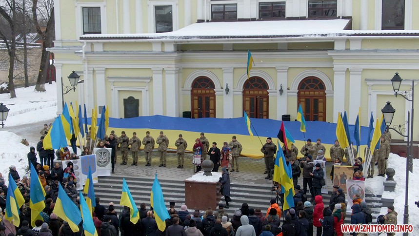З нагоди відзначення Дня Соборності України та 100-річчя проголошення Акта Злуки у Житомирі 22 січня утворити «живий ланцюг єдності» довжиною понад один кілометр та пройшлися патріотичною ходою. Колона разом з військом оркестром та прапороносцями пройшлася від пішохідної вул. Михайлівської до майдану Корольова, де вшанували пам'ять Героїв Небесної Сотні. Далі учасники акції рушили до обласної філармонії ім. С.Ріхтера, де спільним виконанням гімну України завершили акцію.