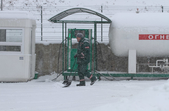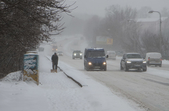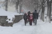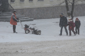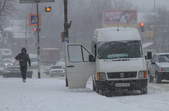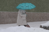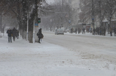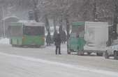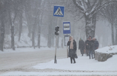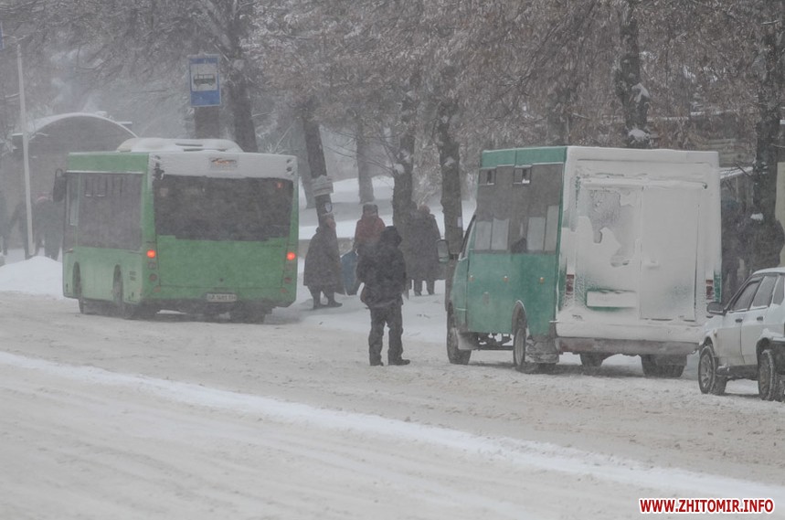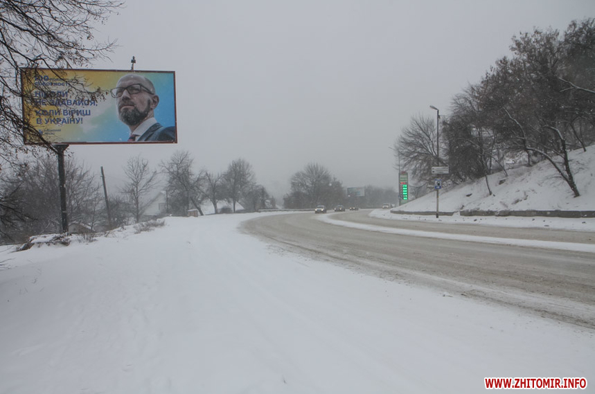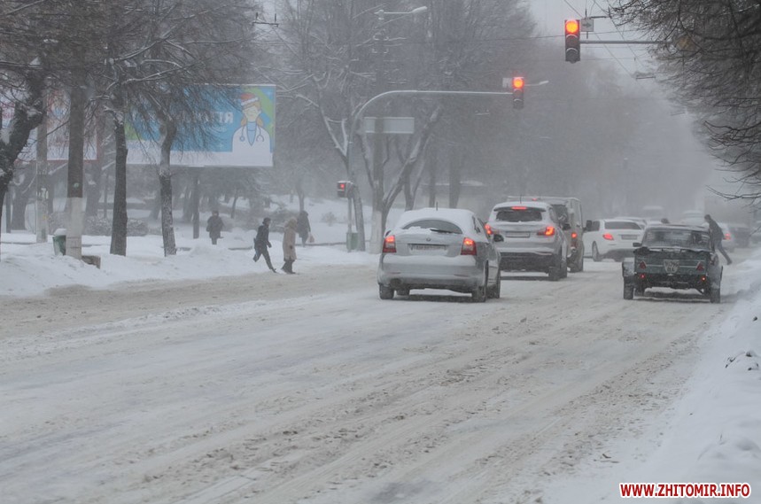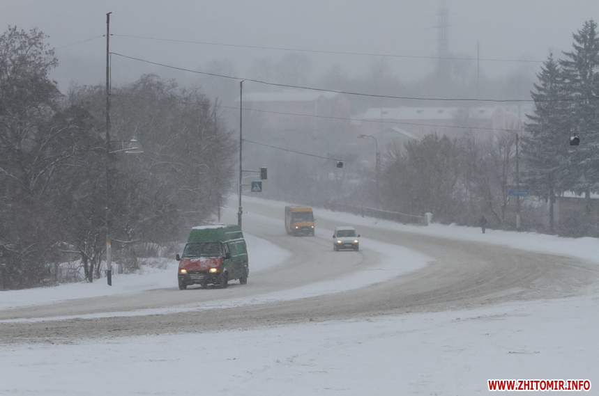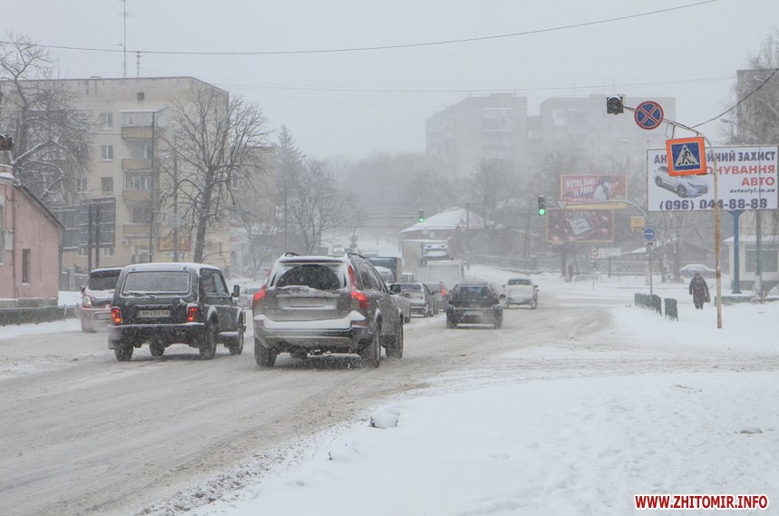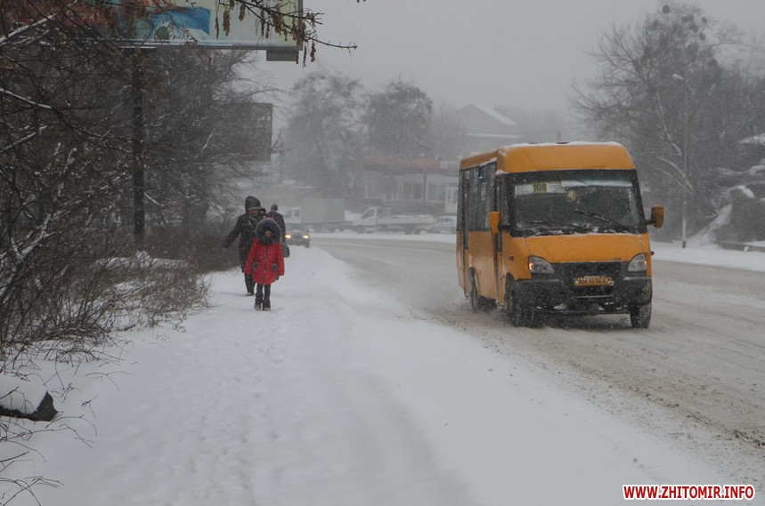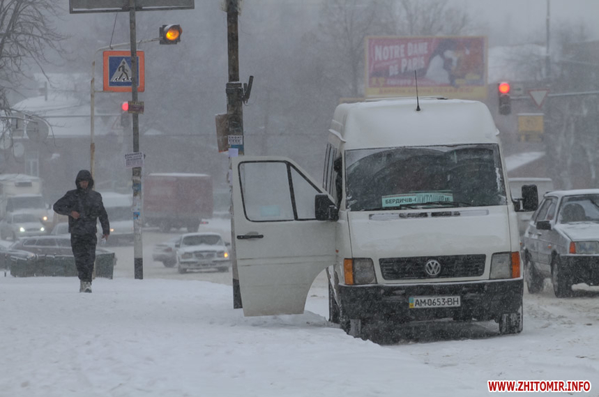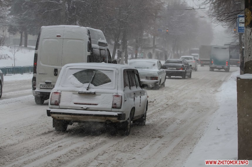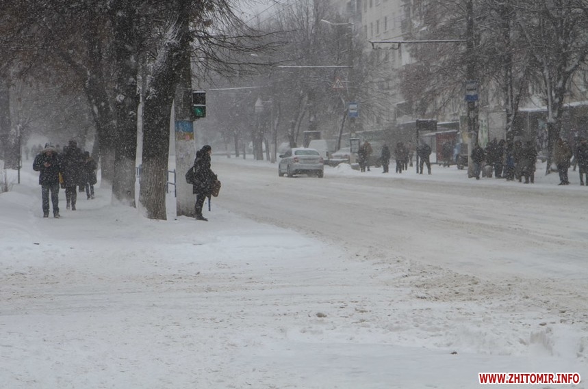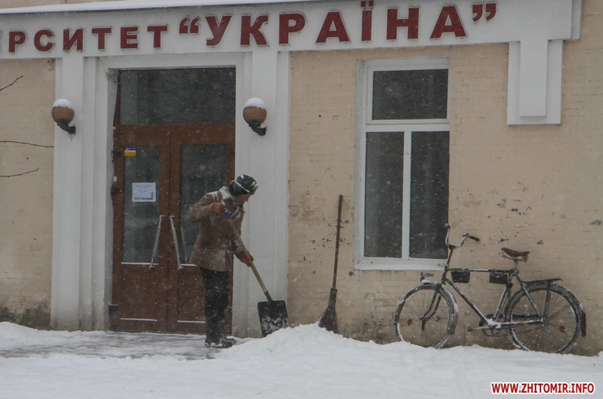 Снігопад у Житомирі, який розпочався в ніч на 23 січня, не вщухає. Деякі з містян захищаються від «білих мух» за допомогою дощовиків і парасольок.