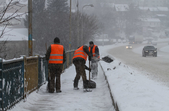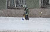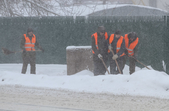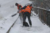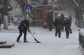В обідню пору 23 січня комунальники, котрі ще з ночі вийшли на боротьбу з опадами, озброївшись лопатами та мітлами, розчищають тротуари, а на дорогах продовжує працювати спецтехніка.