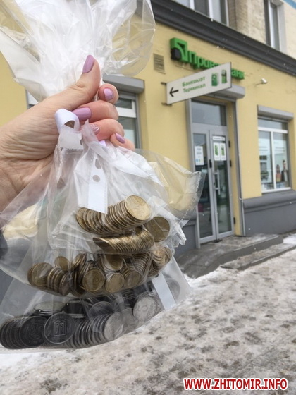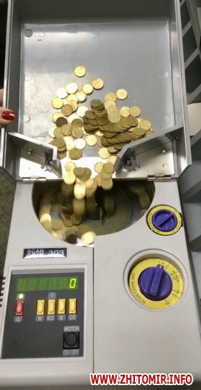 У житомирському відділенні ПриватБанку «Філіал», що за адресою вул. Київська, 47 (поблизу житомирської ЗОШ №17) працює спеціальний апарат для швидкого перерахунку копійок – лічильник монет, за допомогою якого можна за декілька секунд безкоштовно порахувати й обміняти копійки на паперові гроші у необмеженій кількості або ж відкрити копійками депозит чи поповнити діючий.
