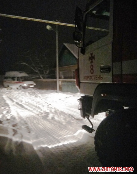«27 січня о 04:38 до служби порятунку «101» м. Коростень надійшло повідомлення про те, що необхідна допомога рятувальників у вилученні автомобіля швидкої допомоги, який застряг у сніговому заметі по вул. Громова. За вказаною адресою виїхали фахівці 8-ї Державної пожежно-рятувальної частини», - йдеться у повідомленні.