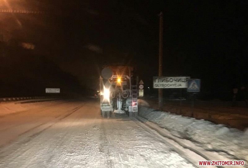 На автомобільних дорогах Житомирської області працює 62 одиниці техніки, які прибирають дороги від снігу, у режимі чергування – ще 17 механізмів.