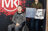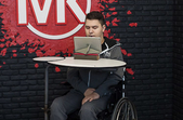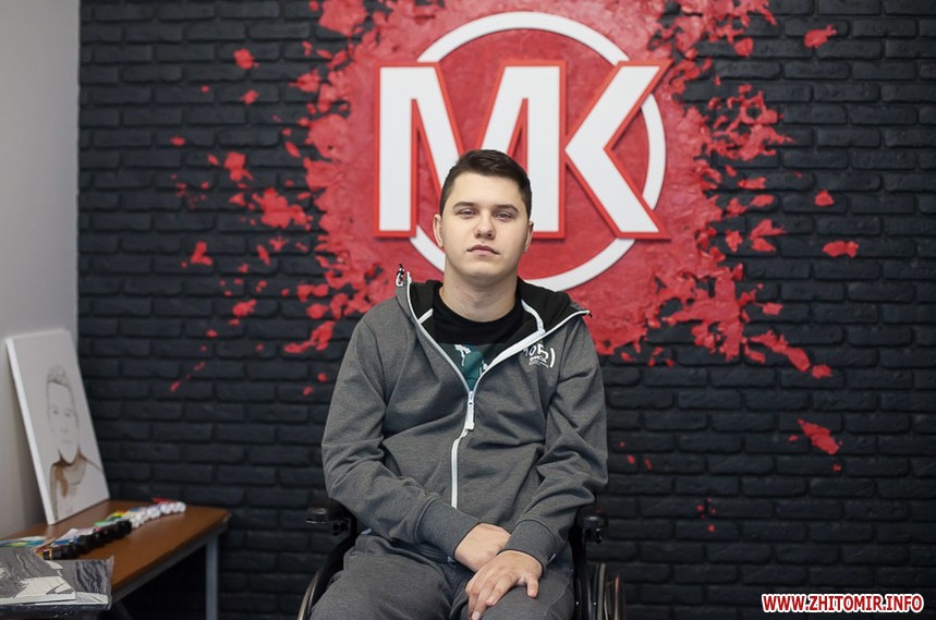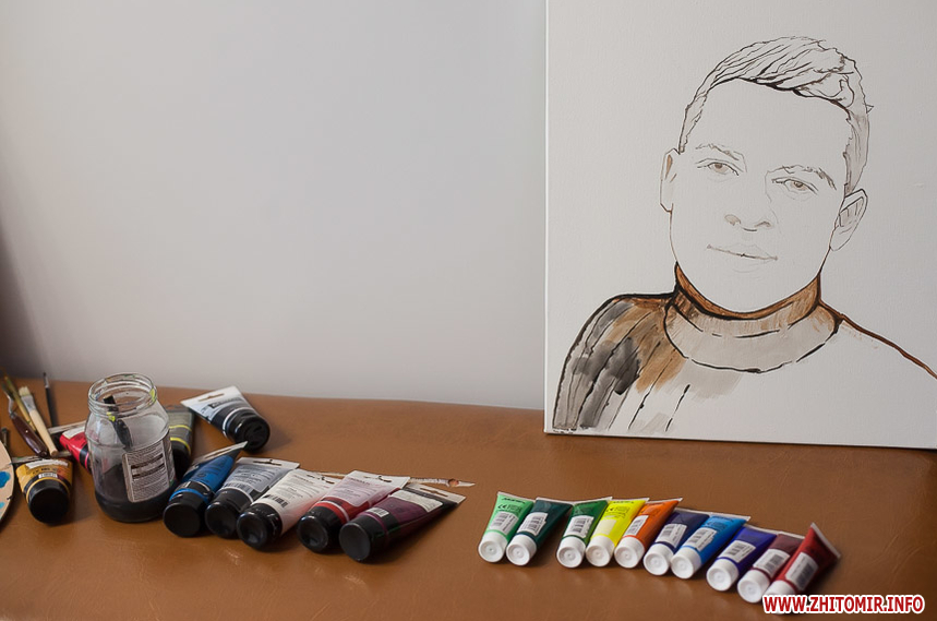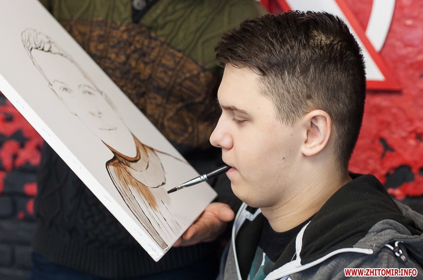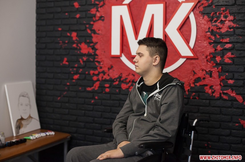 Максим Калінчук, 22-річний хлопець з Житомира, створює картини акриловими фарбами. Він паралізований з 2015 року і не може поворухнути ані руками, ні ногами.