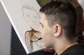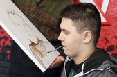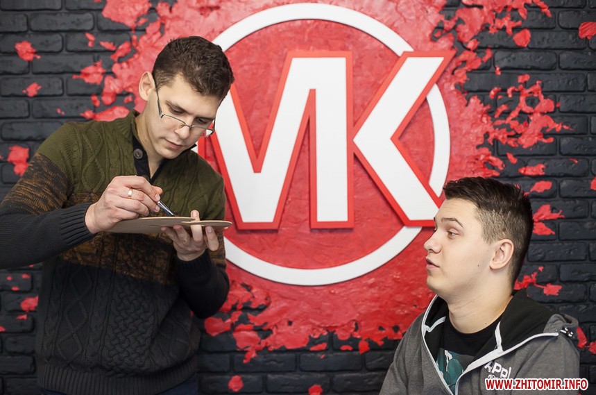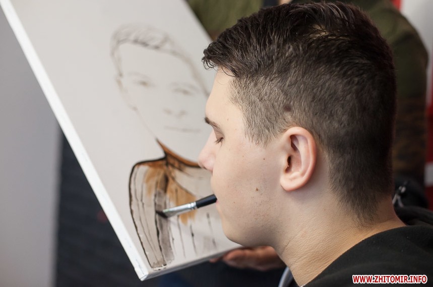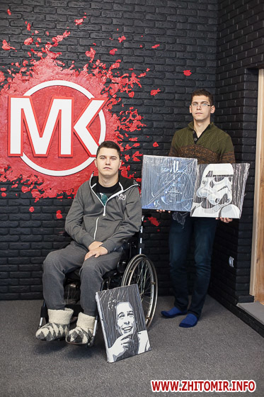 Для Житомир.info юнак з допомогою брата демонструє процес створення картини.