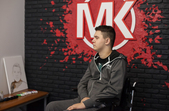 Коли ми приїхали до Максима, то першою вразила атмосфера. Затишний невеличкий приватний будиночок. Біля воріт зустрічає брат, який відпросився з роботи, щоб допомогти. У кімнаті Максима – крутий логотип з ініціалами «МК», саморобний тренажер, картини та фарби. Кілька портретів.