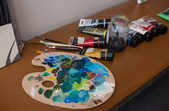 «Розверни мене. Візьми чорну фарбу. Обережно, щоб вода не потрапила. Вичави на палітру, - командує художник. - Тепер трішки води. Трішки фарби. Геть трішки. Розмазуй тепер. Побільше, не бійся! Так, все, харе. Давай мені (пензля)».