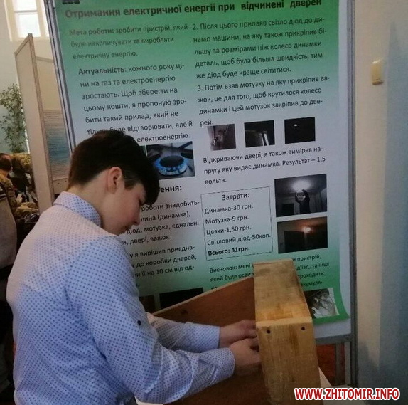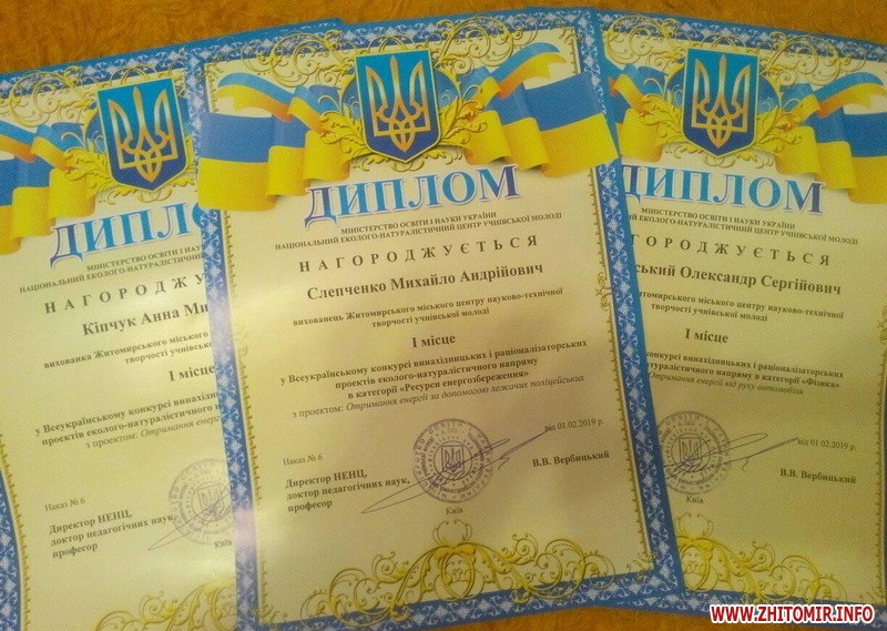 «З 30 січня по 01 лютого 2019 року в Національному еколого-натуралістичному центрі учнівської молоді, за підтримки Національної академії наук України, пройшов Всеукраїнський конкурс винахідницьких і раціоналізаторських проектів еколого-натуралістичного напряму. На виставці-конкурсі були представлені найкращі 73 проекти зі всієї України, які вийшли у фінал. Команда вихованців Житомирського міського центру науково-технічної творчості учнівської молоді, виборола найбільше призових місць», - поінформували в ЦНТТУМ.