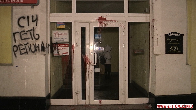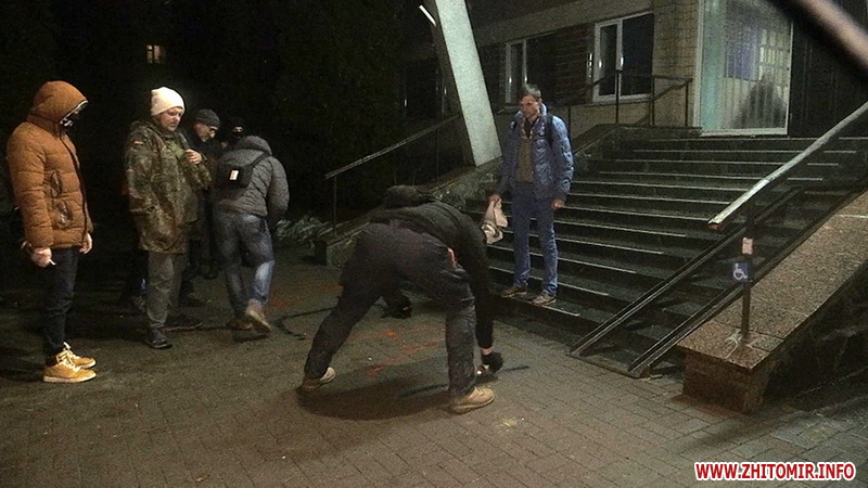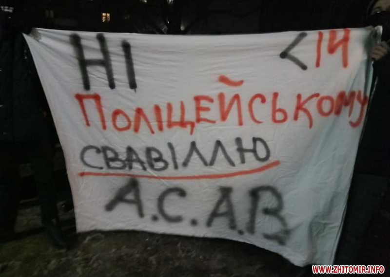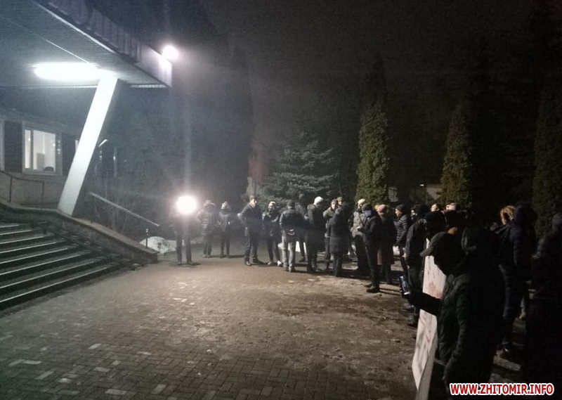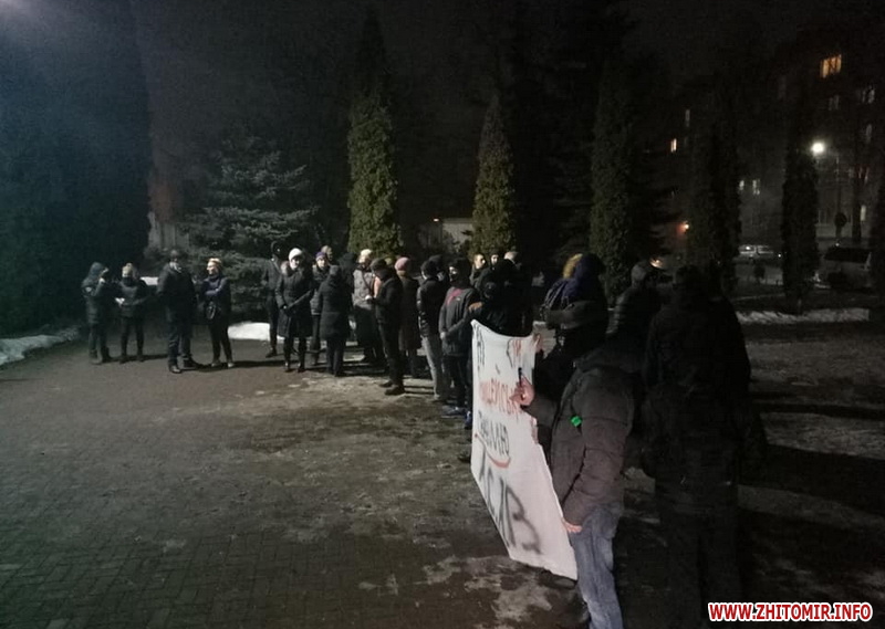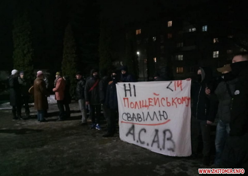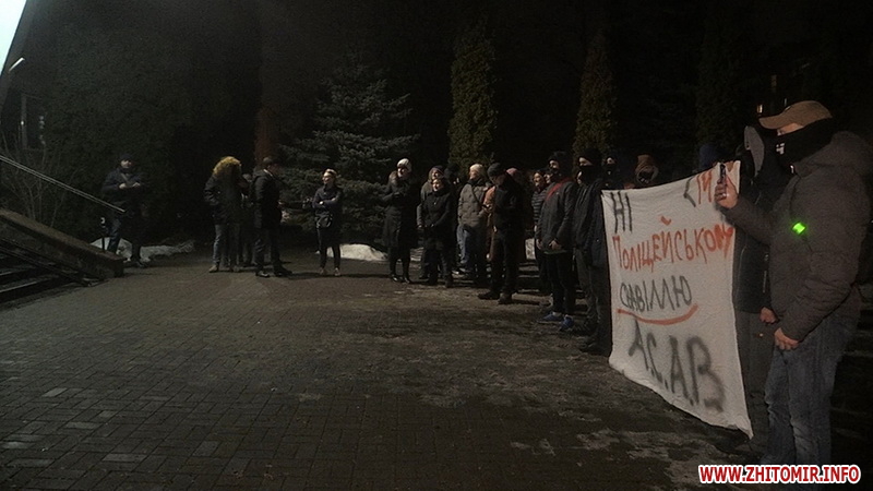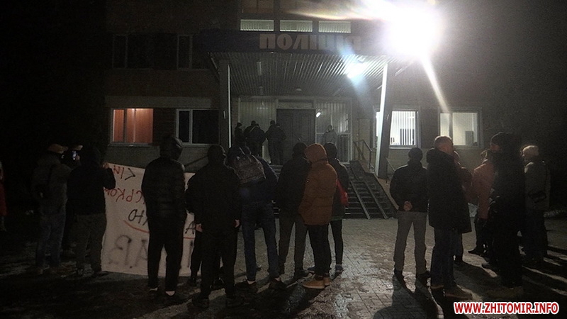 Увечері 3 лютого під будівлею Житомирського відділу поліції зібралося кілька десятків житомирян. Вони прийшли підтримали місцевих націоналістів Сергія Пількевича та Дмитра Черепанського, яких підозрюють у хуліганських діях, вчинених на Перемоги, 21, де знаходиться приймальня партії «За життя».