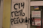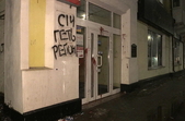 Двоє активістів розповідають, що до їхніх помешкань 2 лютого увірвалися невідомі в поліцейській формі та без жодних пояснень відвезли їх до відділку поліції, де повідомили про підозру. Одному з хлопців нанесли тілесні ушкодження під час транспортування. Вони стверджують, що це політичне замовлення, та запевняють: не мають ніякого відношення до написів на стінах будівлі.
