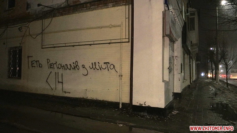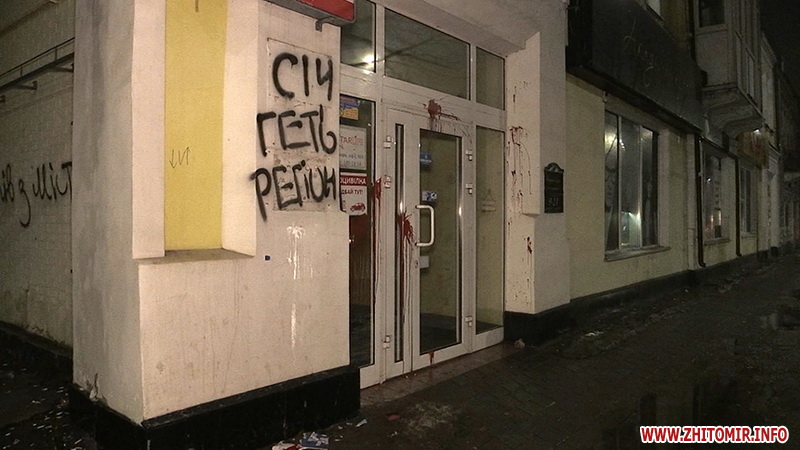 «Все почалося з того, що до мене додому увірвалися невідомі особи в формі поліцейських і фактично витягли мене з ліжка о 7 ранку 2 лютого. В подальшому мене доставили у відділу поліції, не пояснюючи спочатку нічого. А потім, коли вже доставили сюди, вміняли мені свідка за статтею 296 «Хуліганство». По тій інформації, яка нам на даний момент відома, що ми проходимо як свідки, а в найближчому часі нам мають оголосити підозри за вчинення кримінального злочину. Звинувачують в тому, що ми зіпсували офіс партії «За життя», хоча ми там взагалі не були. Тому це просто свавілля або політичне замовлення саме цієї партії, тобто, регіонали вирішили поквитатися з націоналістами. Сьогодні до нас прийшли небайдужі люди, хлопці з організації C14, наші побратимі, хлопці з «Ветеранського братерства», прийшли депутати обласної і міської ради», - розповідає координатор організації С14 в Житомирі Сергій Пількевич.