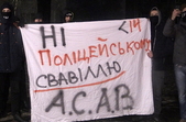 Більше години активісти простояли біля відділку та о 20.30 розійшлися, залишивши надпис «A.C.A.B.» на асфальті біля головного входу.