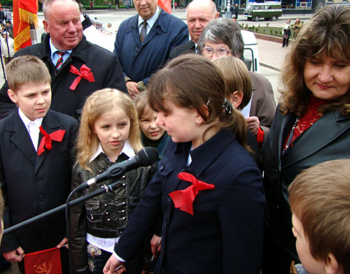 После митинга колонна под красными знаменами прошлась до Старого Бульвара, где состоится концертная программа.